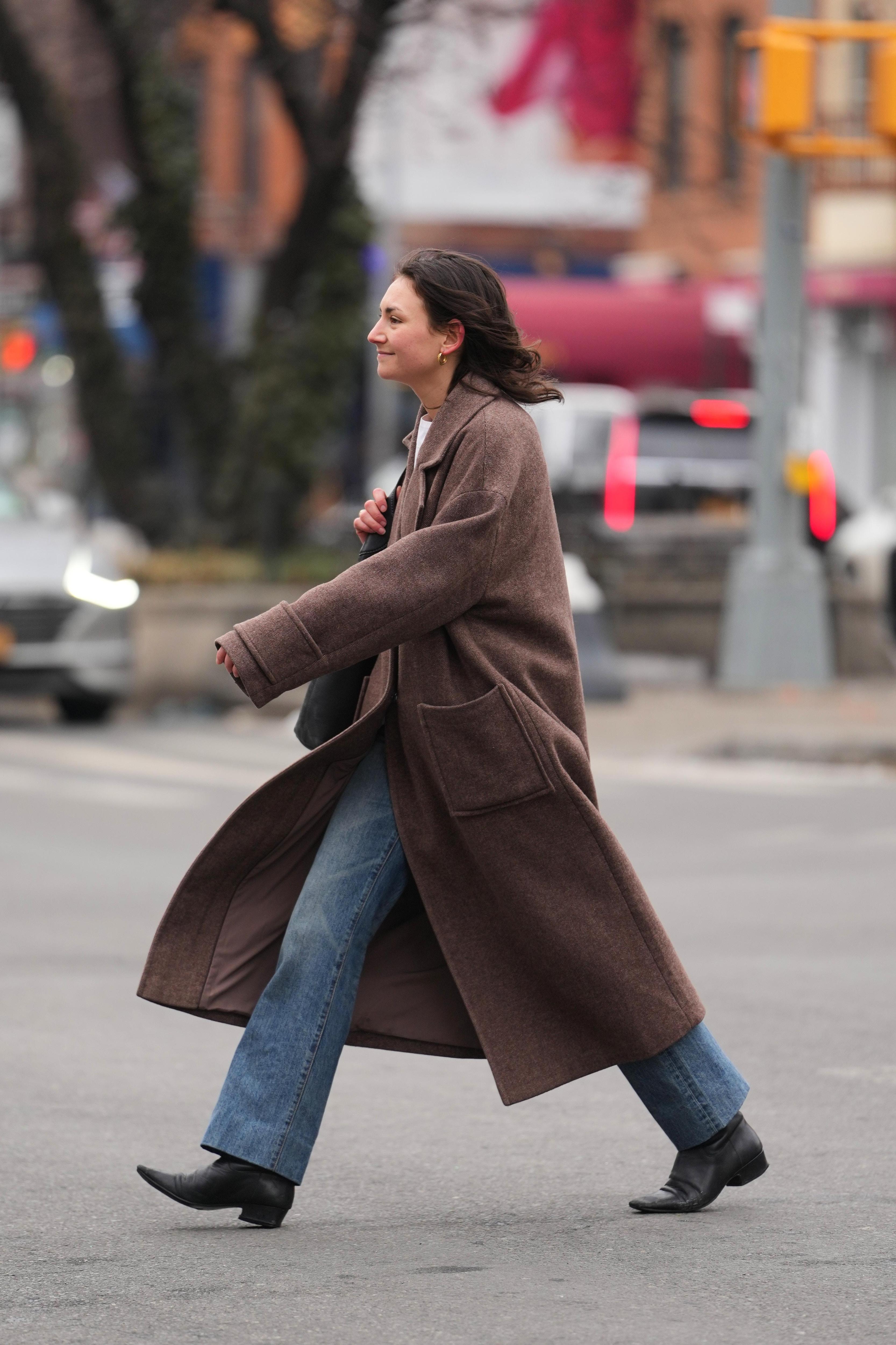 С объемным свитером и длинным пальто