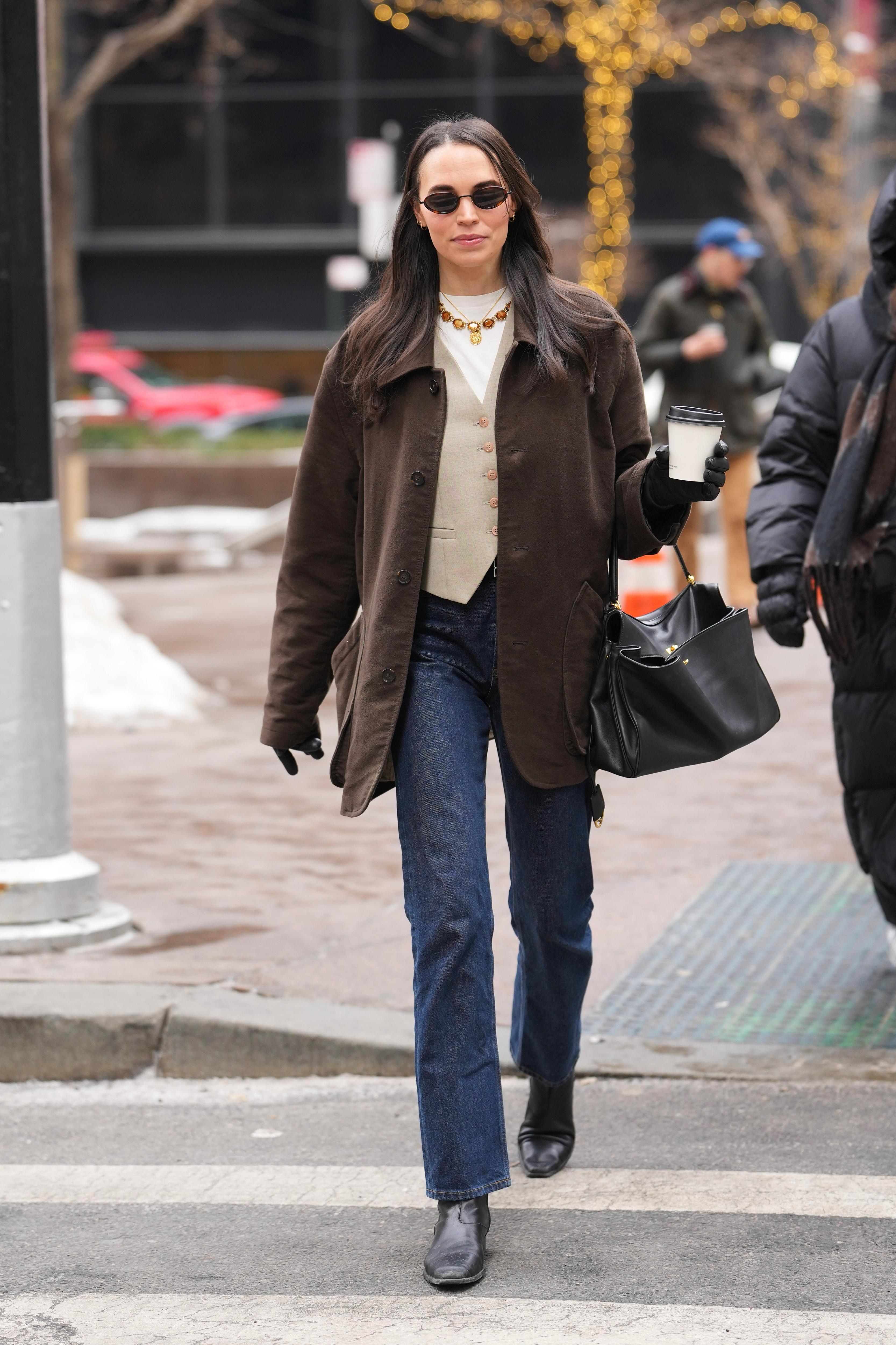 В 2026 году это комбо выглядит даже более актуальным, чем 30 лет назад, потому что сейчас в моде осознанность, комфорт и умение выглядеть стильно без лишних усилий. Лови несколько идей, как вписать голубые джинсы и темные челси в современный гардероб 👇🏻