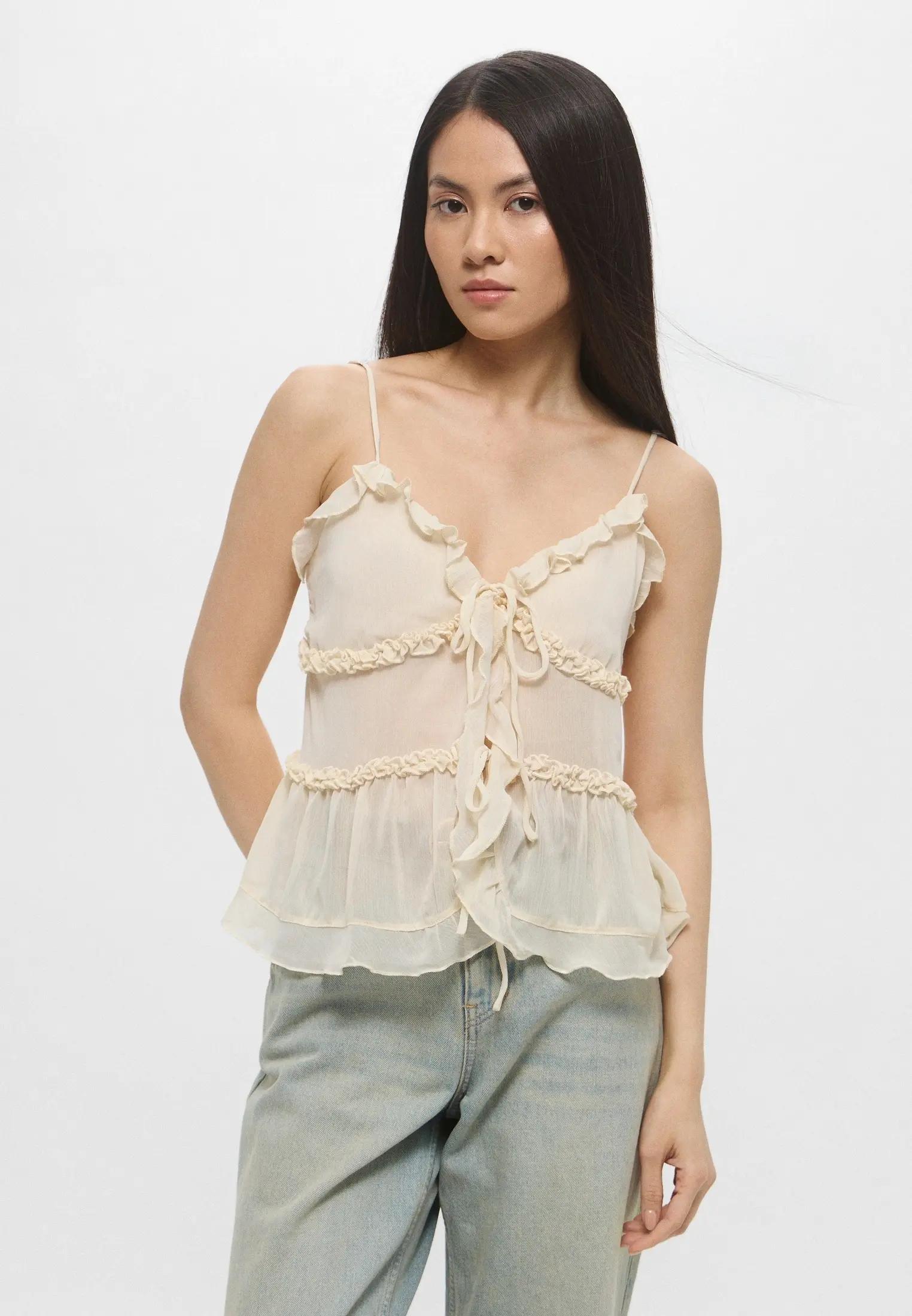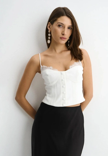 Теперь к самому главному: как приручить этот тренд и не выглядеть при этом так, будто ты потерялась во времени и пространстве? Все проще, чем кажется. Главный герой весны и лета — топ в стиле бохо. Кружева, рюши, кулиска, струящиеся ткани, многослойность, открытые плечи с тонкими бретелями или пышные рукава. Сама по себе эта вещь уже выглядит выразительно, а иногда и чересчур нарядно. Поэтому твоя задача — подружить ее с максимально простым низом.