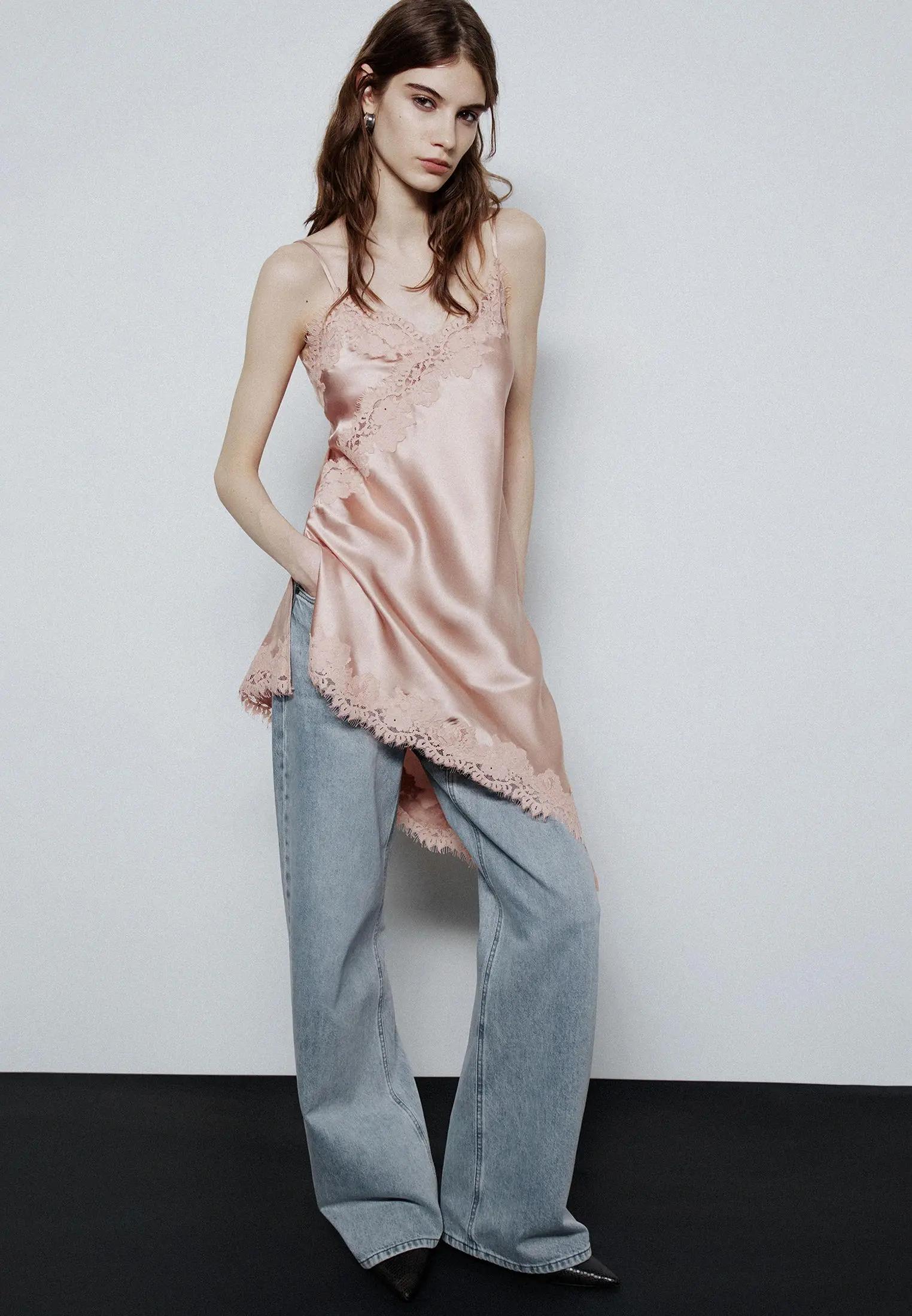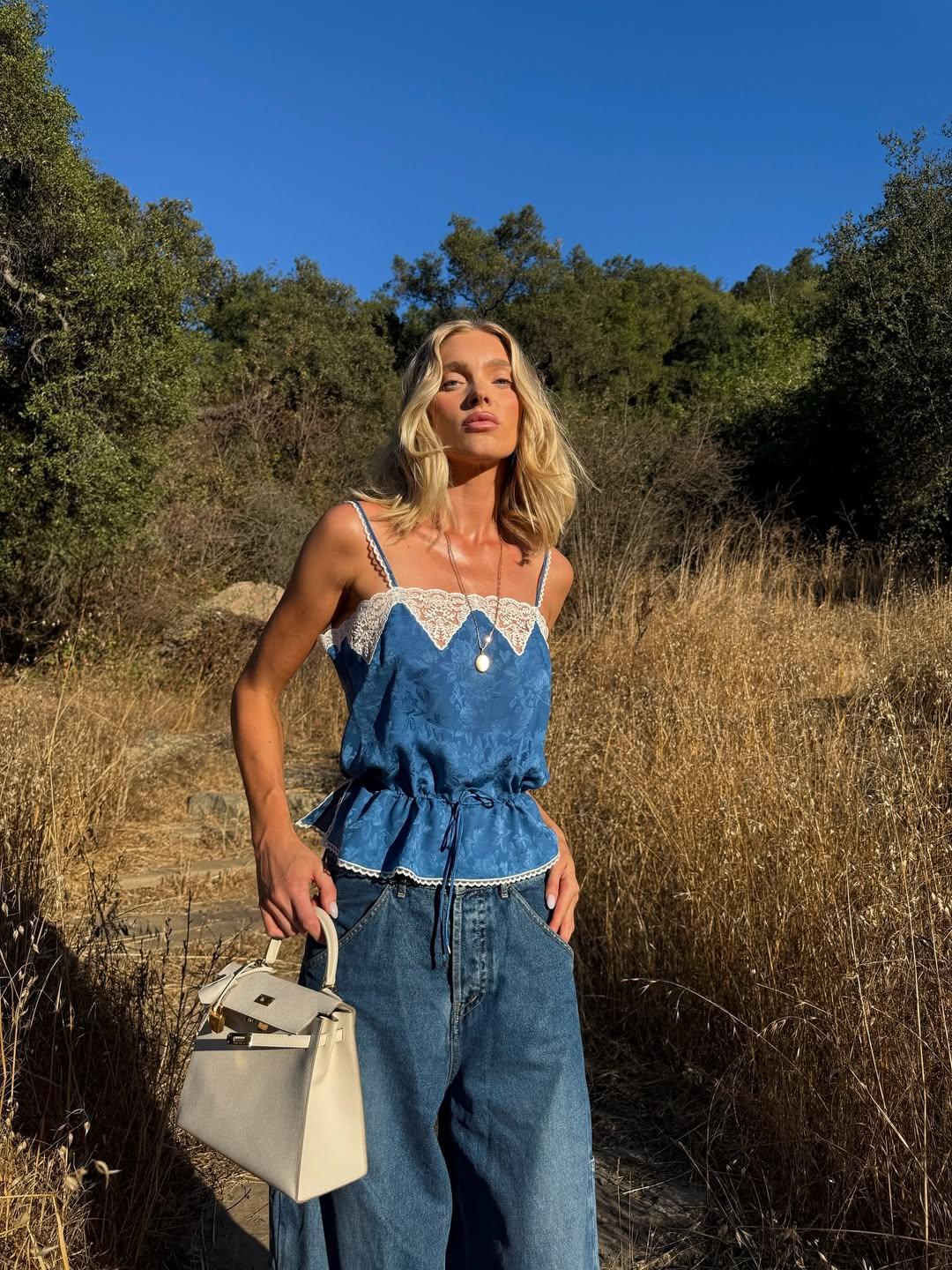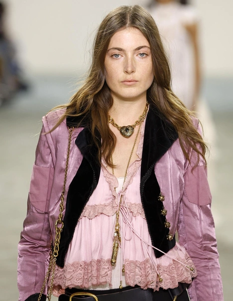 Вообще топы с кружевной отделкой, нежными рюшами и из многослойных тканей из тончайшего батиста начали появляться в коллекциях задолго до того, как стало известно о новой экранизации. Во многом спасибо нужно сказать Chloé в лице Чемены Камали, которая вдохнула в бренд новую жизнь и вернула моду на все воздушное и женственное. Но, пожалуй, именно «Грозовой перевал» стал тем самым катализатором, который выводит богемные образы на совершенно новый уровень.