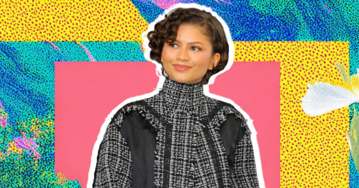 Зендею заметили, когда она покидала съемочную площадку шоу «Доброе утро, Америка». На ней был полный комплект прямо с подиума показа Erdem осень-зима 2026/27. Верхняя часть образа отсылала к чопорным лондонским леди: жакет с высоким воротником-стойкой из двухцветного черно-белого твида с окантовкой и — что неожиданно — черными вставками из плащевки. Этакий пэчворк, разбавляющий сдержанный, строгий, почти аскетичный верх. А вот нижняя часть окончательно сбивала всю спесь.