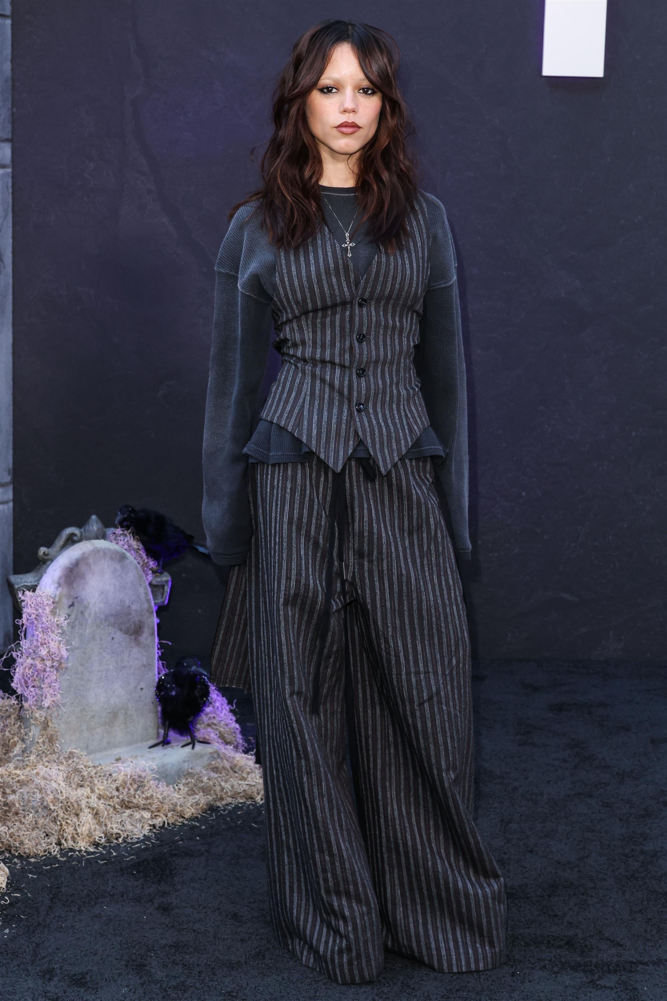 На недавнем промо-мероприятии в поддержку сериала «Уэнсдей» актриса появилась в ансамбле от Ann Demeulemeester. Этот образ идеально подходит для тех, кто ценит классические костюмы, но хочет придать им артистизма и дерзости. В ее интерпретации брючный костюм стал драматичным, оставаясь при этом удобным и современным.