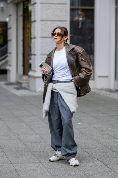 У кроссовок есть одно большое преимущество — луки с ними легко поддаются стилизации! Один из стильных и практичных вариантов — сделать акцент на талии и повязать свитер на бедрах или накинуть его поверх куртки 🔥