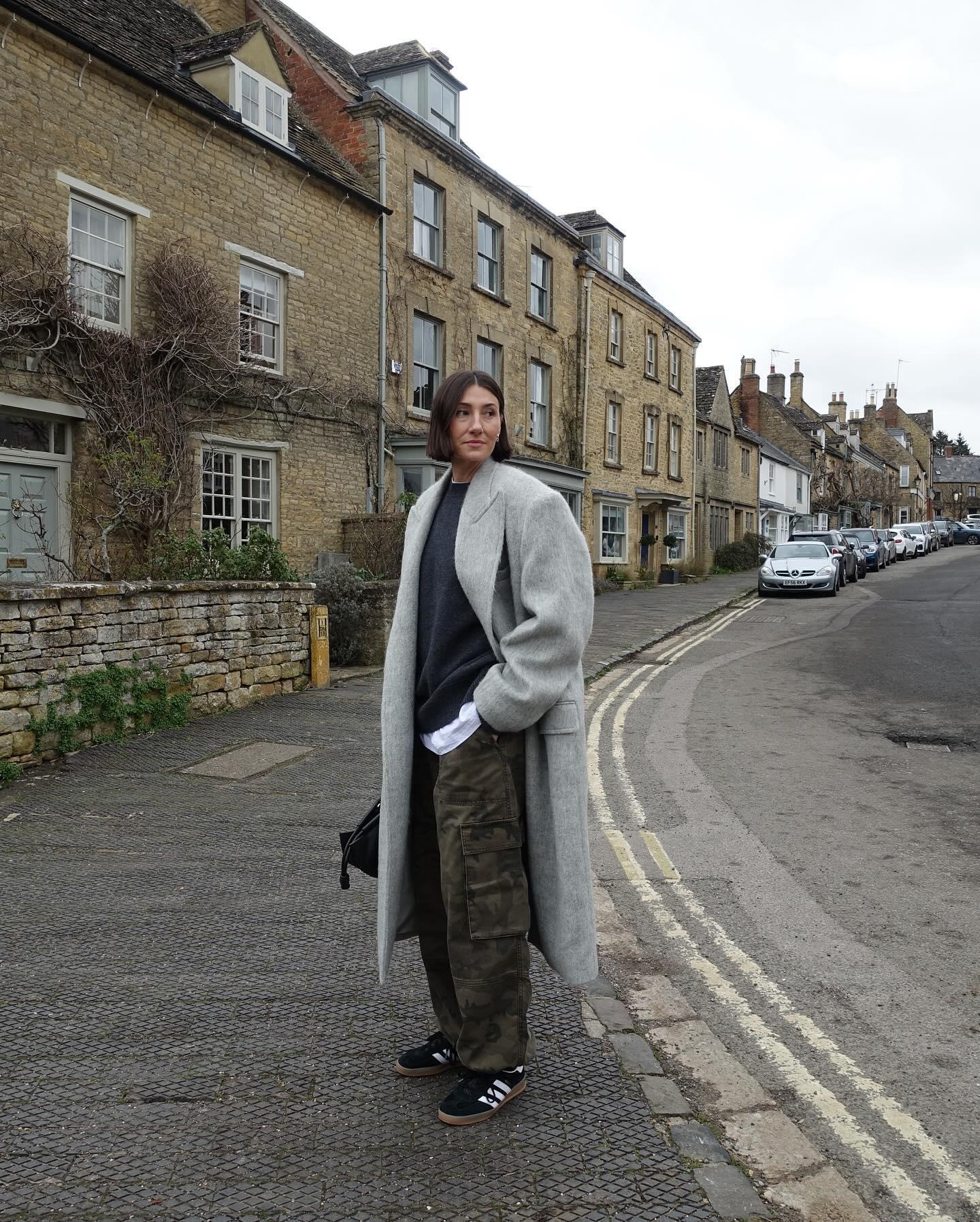 Оверсайз-пальто + кроссовки — сама по себе уже идеальная формула на любой сезон, но мы тебе предлагаем дополнить этот классический вариант интересными предметами гардероба, например, джинсами в стиле милитари или гранж 🔥