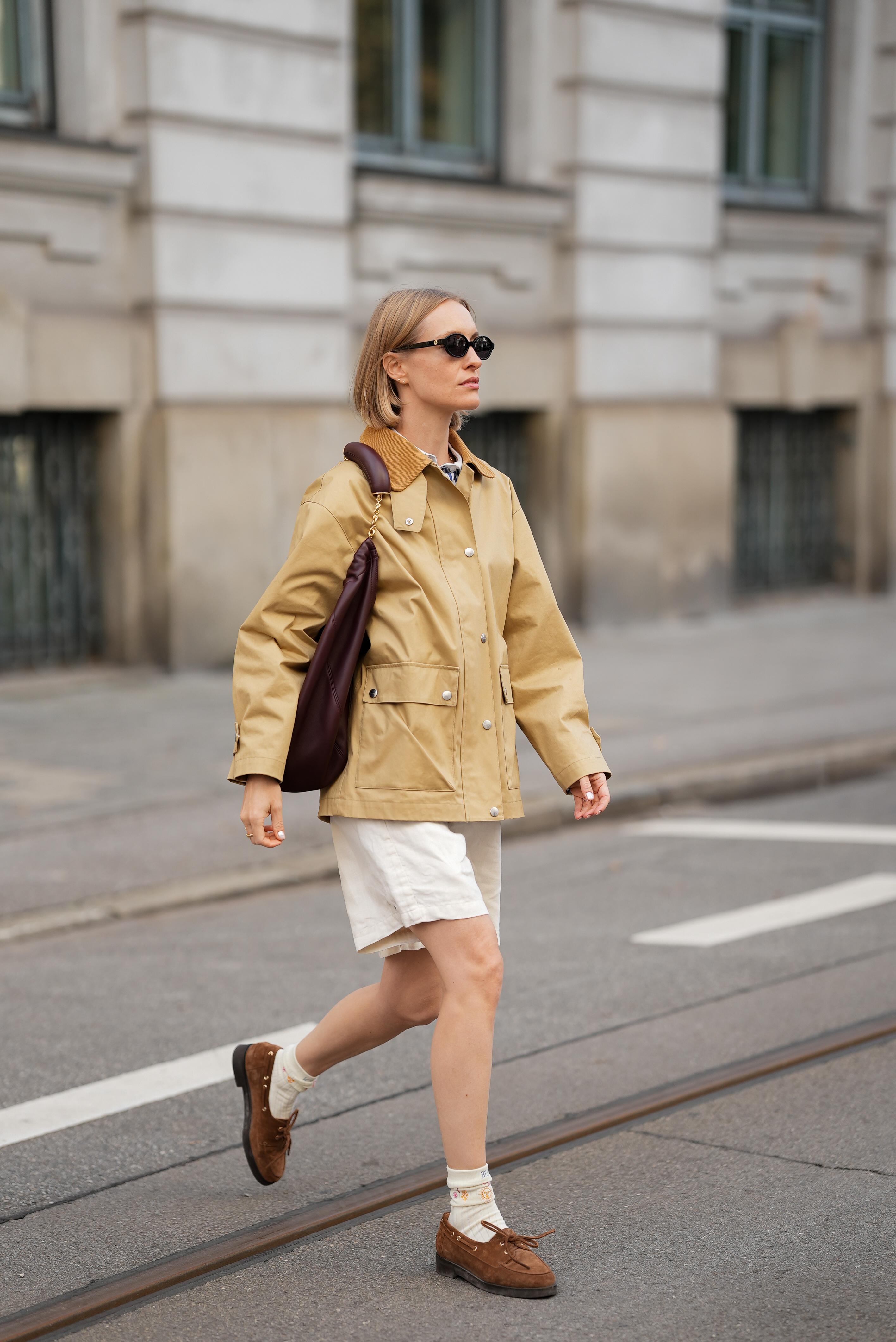 Комфортные лоферы или остромодные топсайдеры в паре с носками — давний любимчик модных домов и фэшионисток, а этой осенью они идеально дополняют бермуды. Чтобы образ не выглядел слишком школьным, стоит добавить куртку свободного кроя — будь то укороченный тренч, косуха, ветровка или популярная куртка «рабочего». Получается современно, удобно и с правильной долей непринужденности.