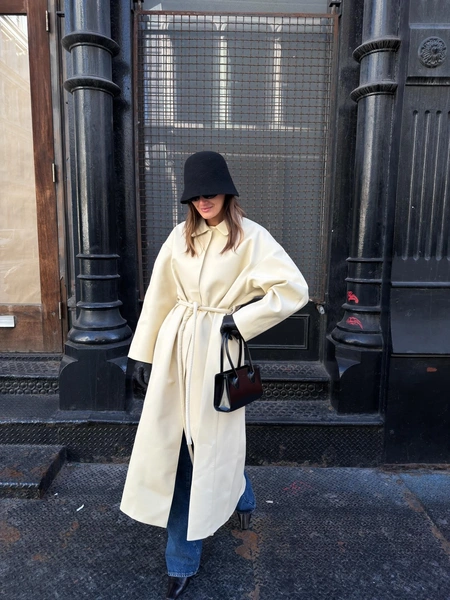 Забудь про пояса, которые идут в комплекте с верхней одеждой. Самый актуальный способ подчеркнуть талию этой весной — использовать обычный кожаный ремень, широкий или узкий, с клепками или без, поверх твоего пальто или объемной куртки. Этот прием не только создает выразительный силуэт, но и добавляет образу индивидуальности. Ты буквально конструируешь свой силуэт, делая даже самое строгое пальто уникальным.