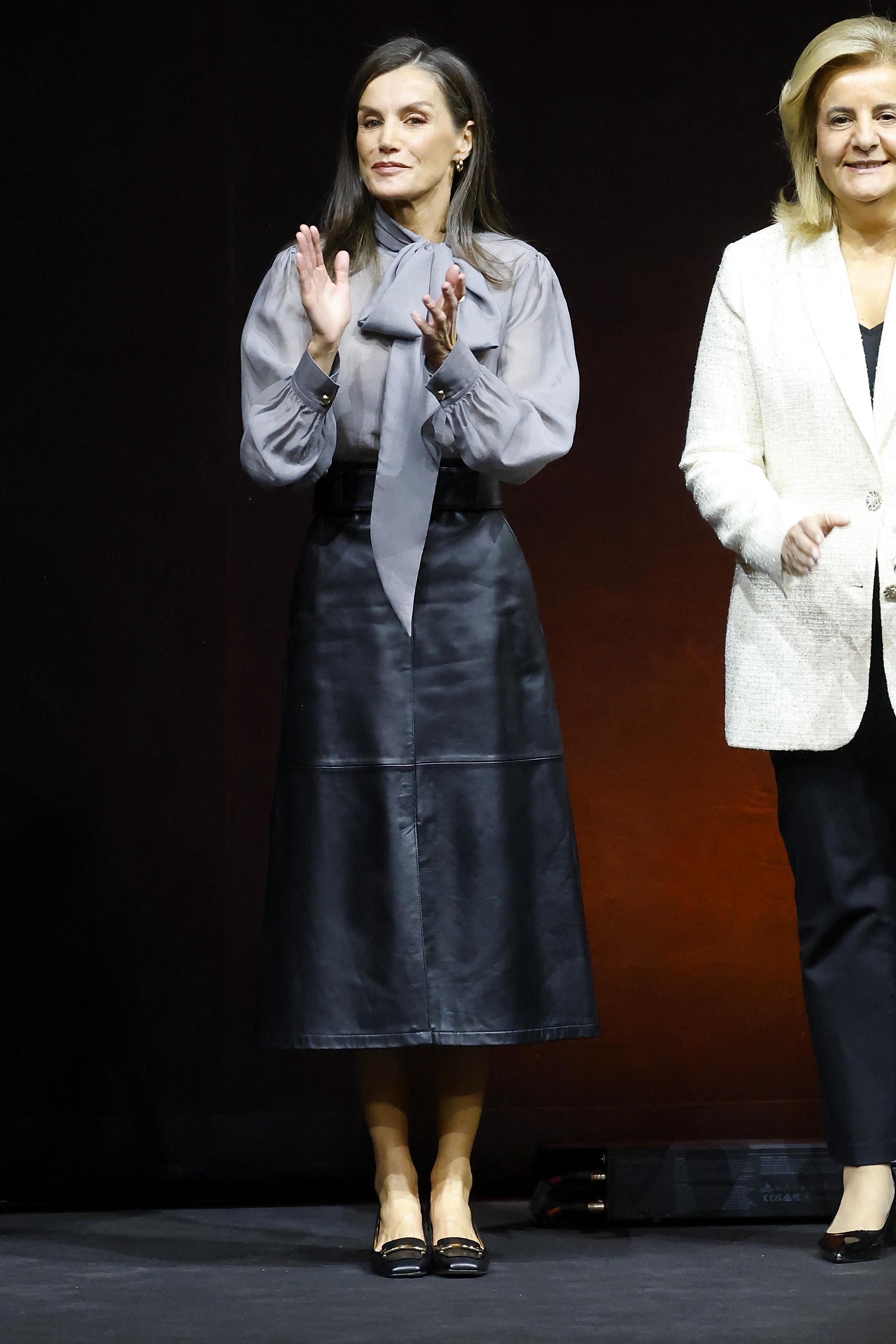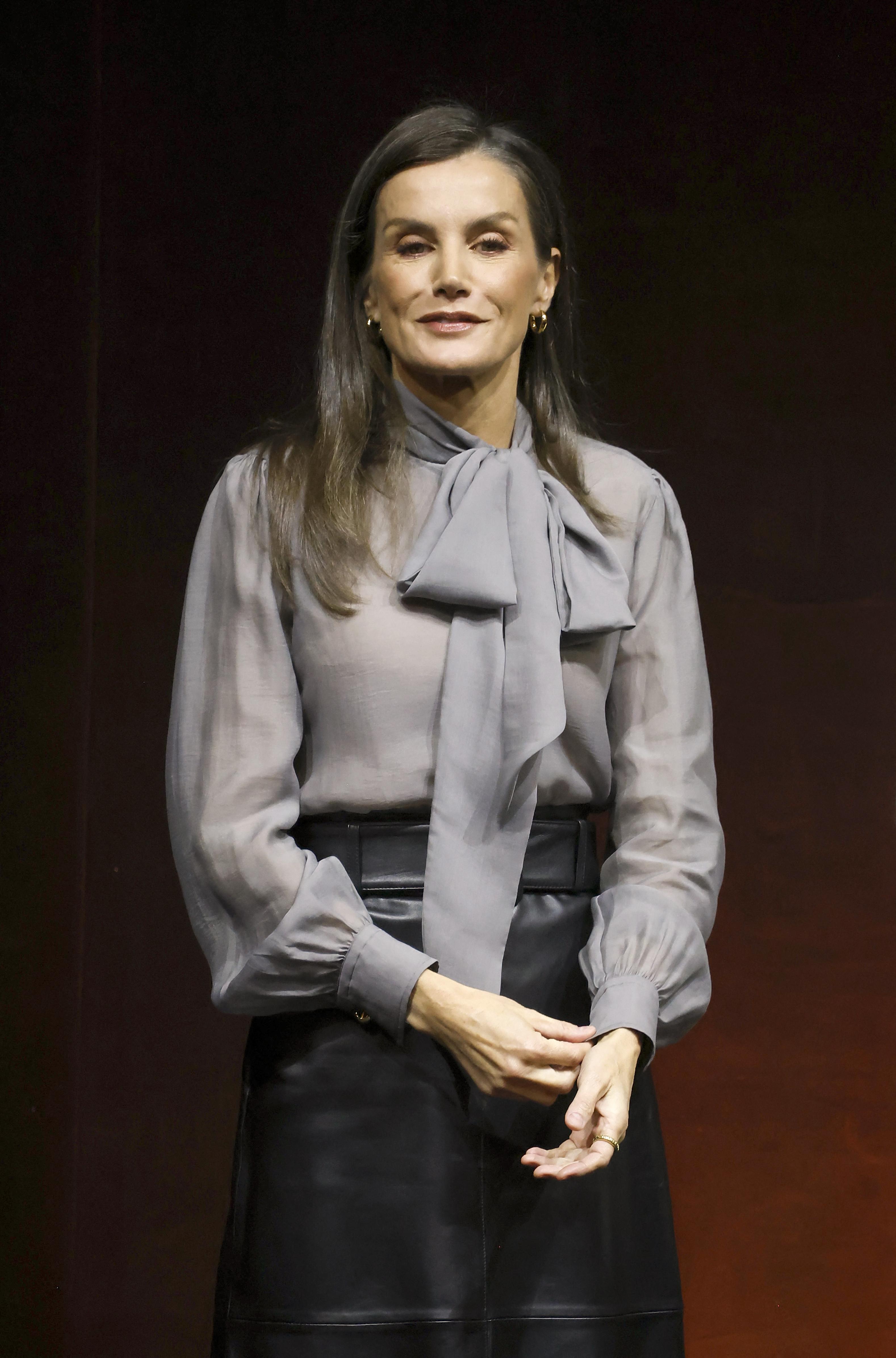 Испанская королева Летиция, известная своим точным чувством меры и талантливой работой с классикой, вышла на публику в образе, который доказал, что полупрозрачная блузка может выглядеть элегантно, уместно и невероятно современно — даже в холодное время года! 😉