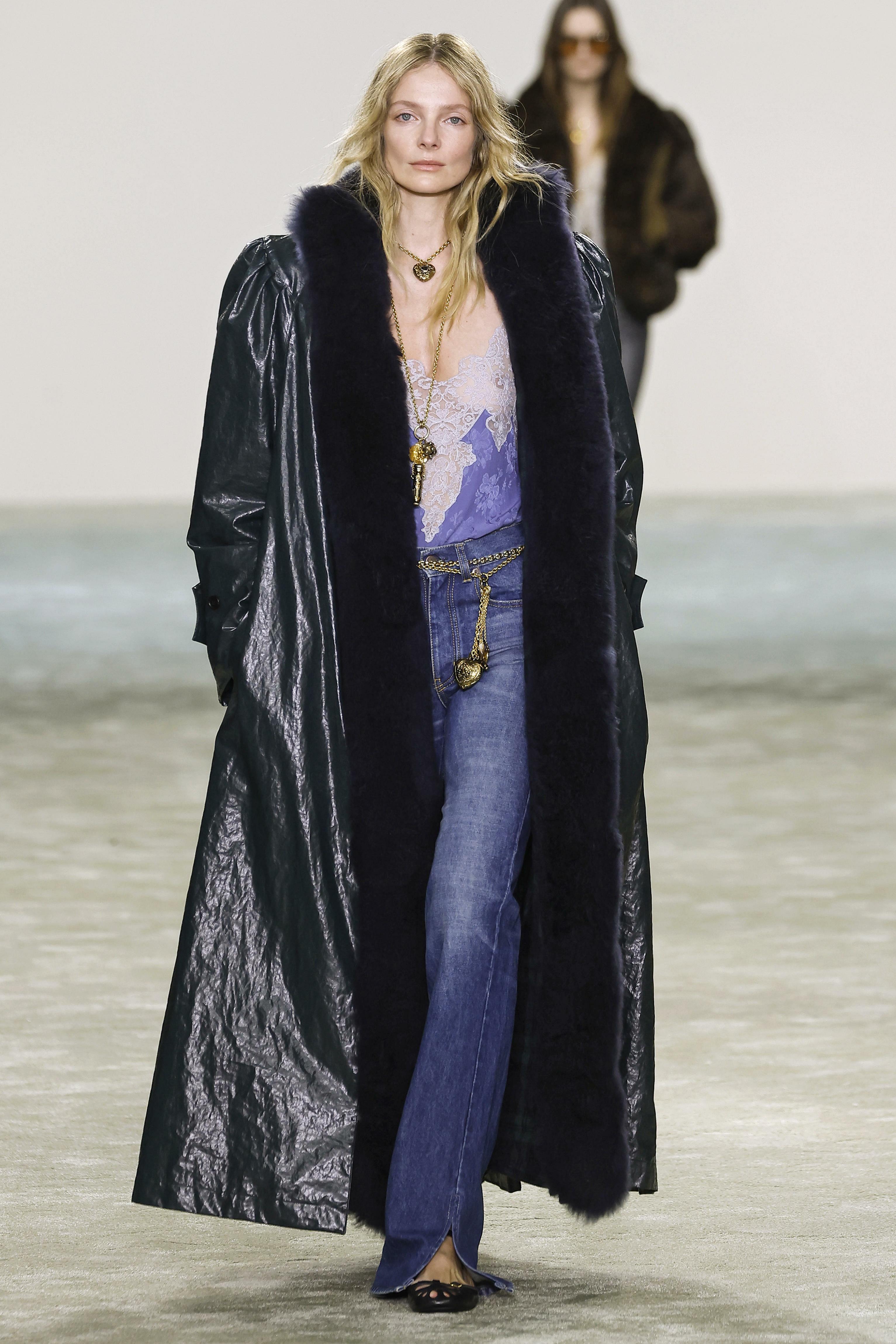 Что произойдет, если добавить стеганый материал в афганское пальто? Получится современный и стильный вариант верхней одежды. Именно такой подход продемонстрировал модный дом Chloe, переосмыслив пальто фермеров. В образах были майки и платья из шелка, кожаные брюки, множество мелких деталей и афганское пальто из стеганого материала. Согласись, эти луки вызывают желание рассматривать их вечно.