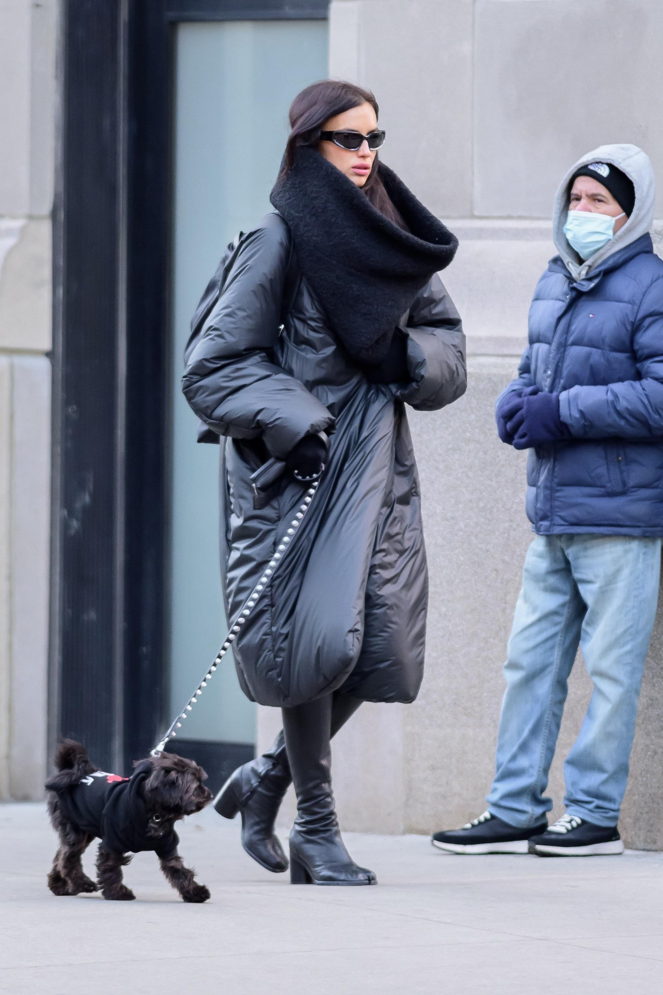 Зимой Ирина Шейк неизменно появляется в своем любимом черном пуховике-халате: без капюшона, с запахом, дутом, но без лишних деталей. Кажется, она носит одну и ту же модель уже несколько лет — и это не поза, а осознанный выбор. Разумное потребление от супермодели мирового масштаба — пример того, как можно быть стильной, не гоняясь за новинками каждый сезон, особенно если до этого ты приобрела по-настоящему универсальную вещь.
