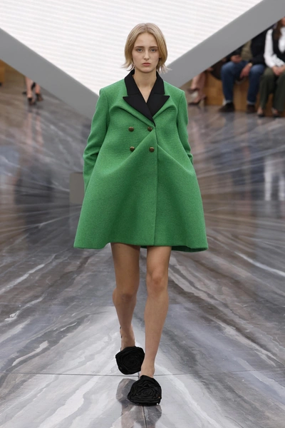 Глубокий травянистый или изумрудный зеленый — еще один фаворит весны 2026. В отличие от желтого, он выглядит более сдержанно и легко вписывается в повседневный гардероб. Особенно эффектно такие пальто смотрятся в прямом или слегка расширенном крое. Зеленый хорошо сочетается с коричневым, молочным, серым и денимом, поэтому с ним легко собрать продуманный, но не перегруженный образ.