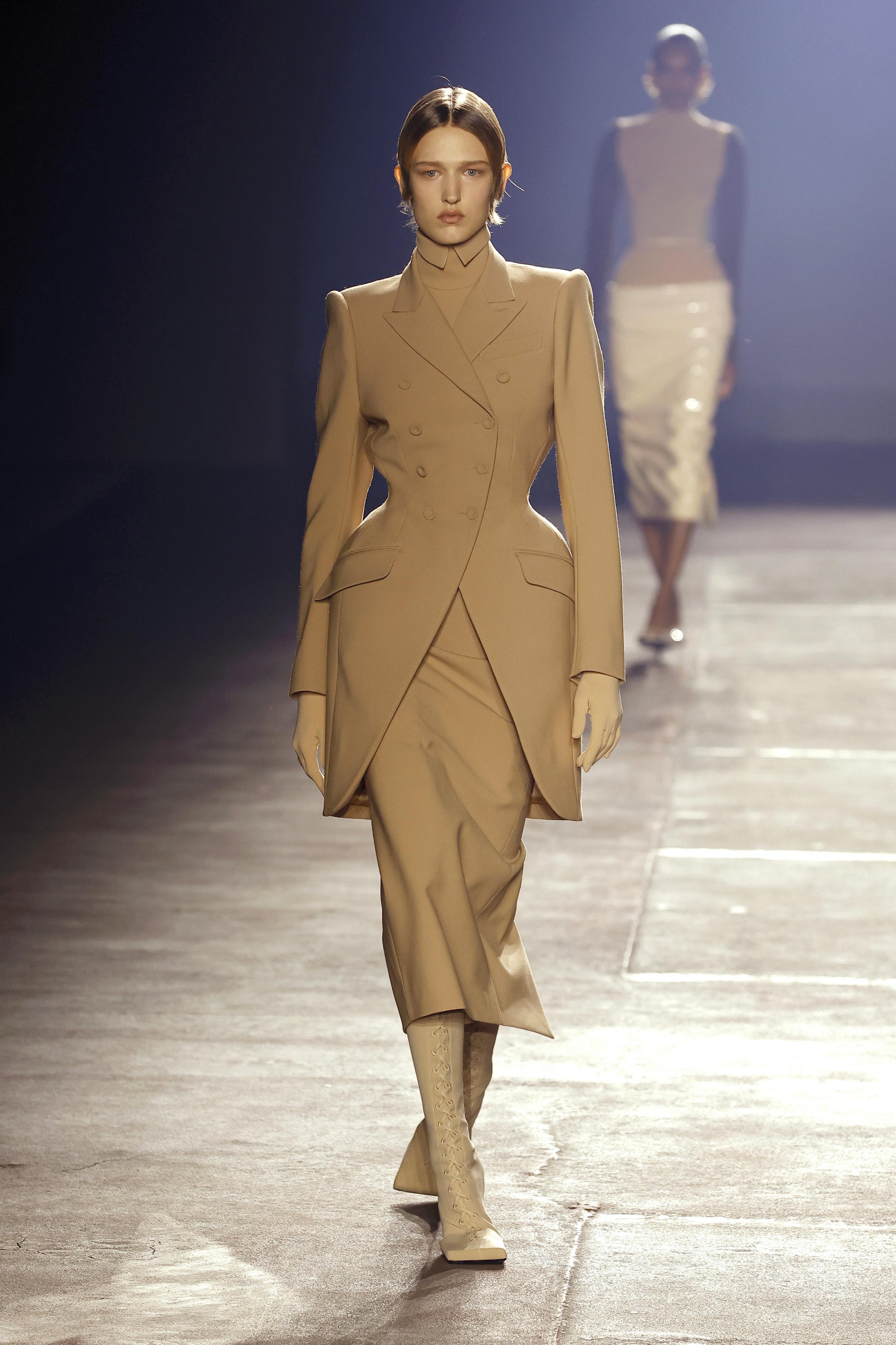 После нескольких сезонов оверсайз-моделей мода возвращается к приталенным силуэтам. Речь идет не просто о мягком подчеркивании фигуры, а о, можно даже сказать, жесткой посадке и классическом силуэте «песочные часы». Такие пальто обычно длинные, с выраженной линией плеч, что делает их еще более привлекательными, и четко обозначенной талией. Они прекрасно сочетаются с юбками, широкими брюками и джинсами. Особенно популярны модели в спокойных тонах — сером, графитовом, молочном и теплом бежевом.