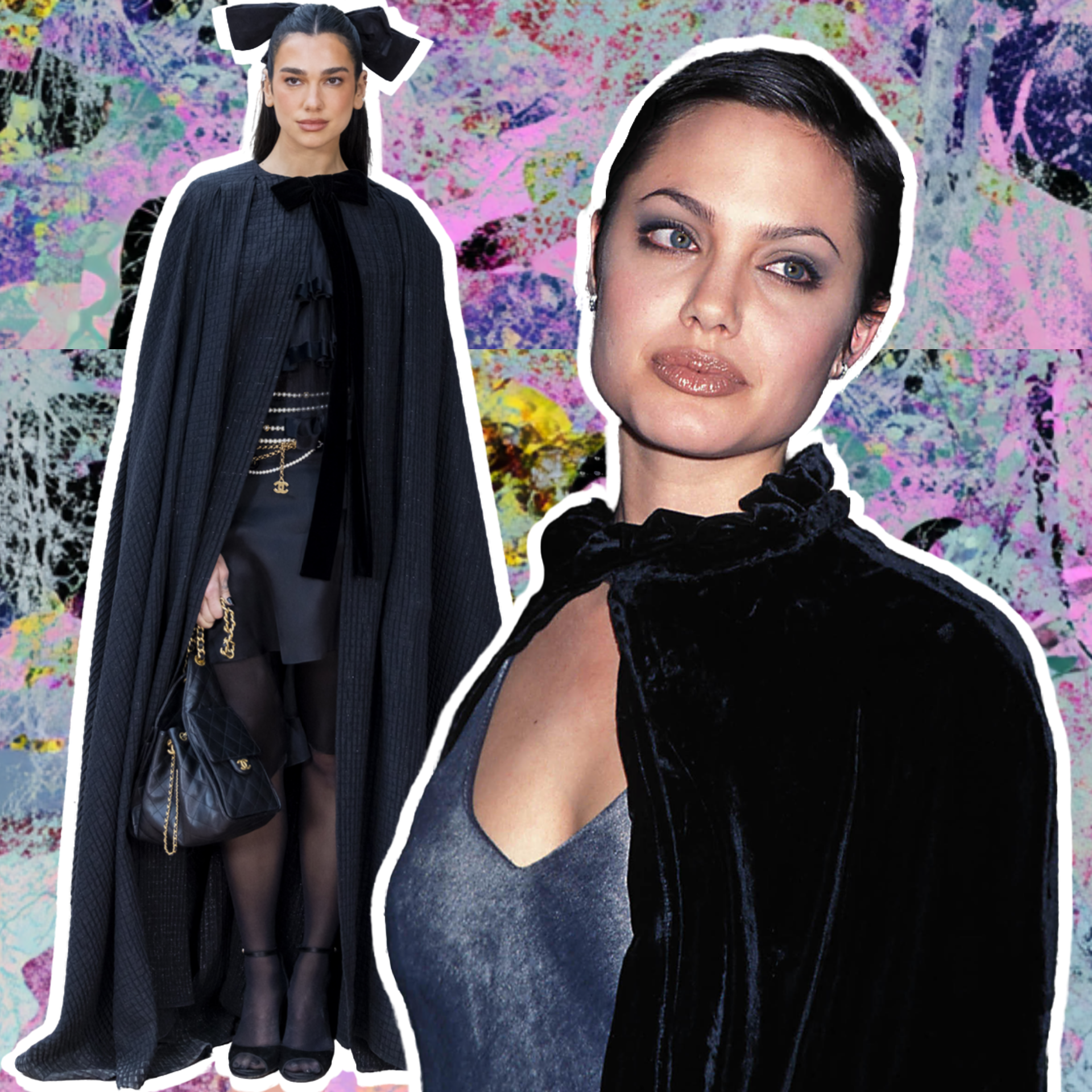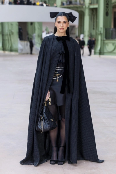 У накидки давно есть верные поклонницы. В начале 2025 года Дуа Липа появилась на улицах Парижа во время недели высокой моды в эффектной, максимально выразительной модели Chanel. Это была не просто плотная накидка, а полноценный элемент образа, который притягивал взгляд и задавал настроение.
