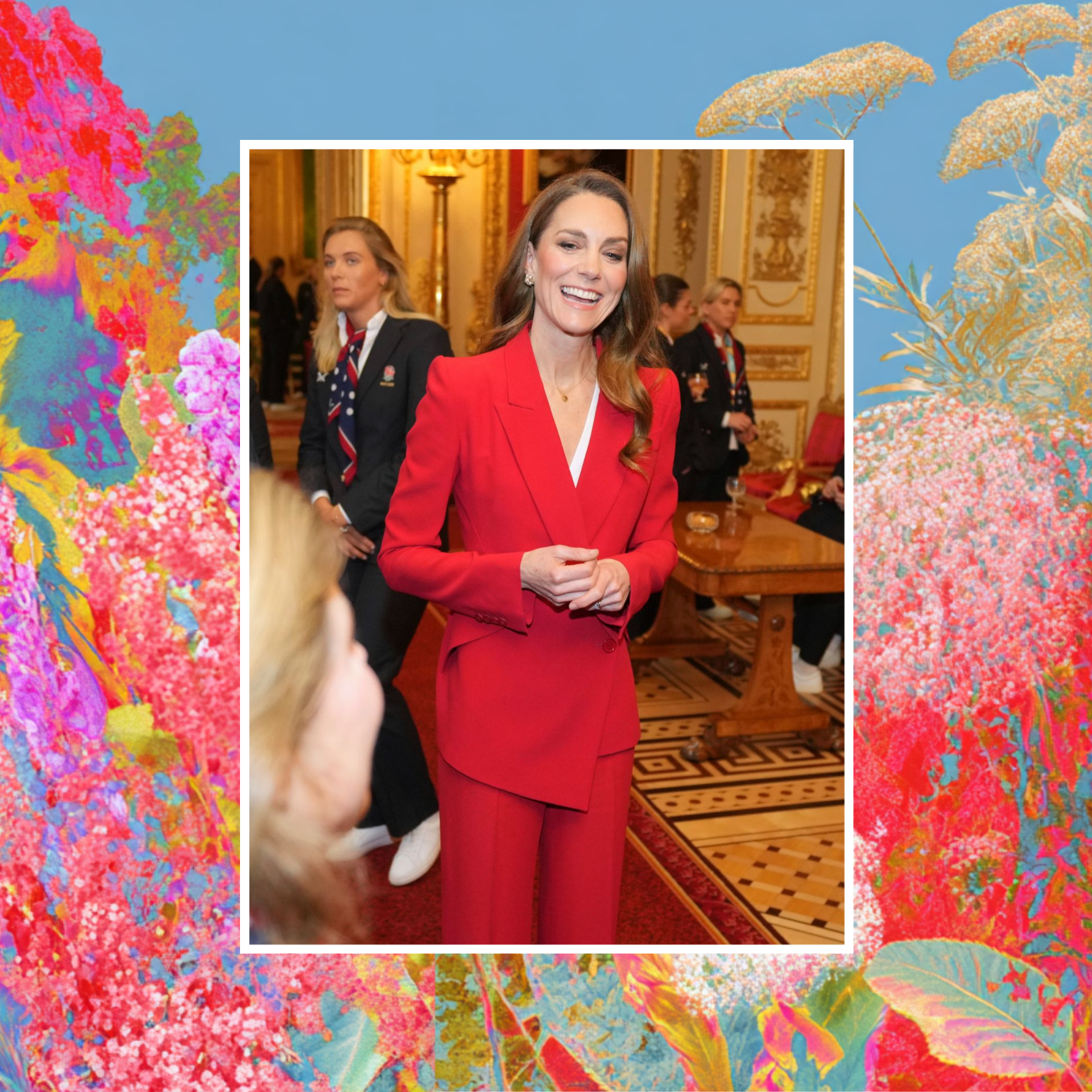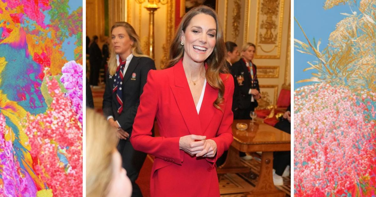 Кейт Миддлтон вновь напомнила, что умеет работать с модой тонко и уверенно. На этот раз повод был не формальный, а по-настоящему торжественный: принцесса Уэльская приняла в Виндзорском замке женскую сборную Англии по регби «Красные розы», чтобы поздравить их с победой на чемпионате мира 2025 года. И для этого события она выбрала образ, который моментально привлек внимание — костюм насыщенного алого цвета.