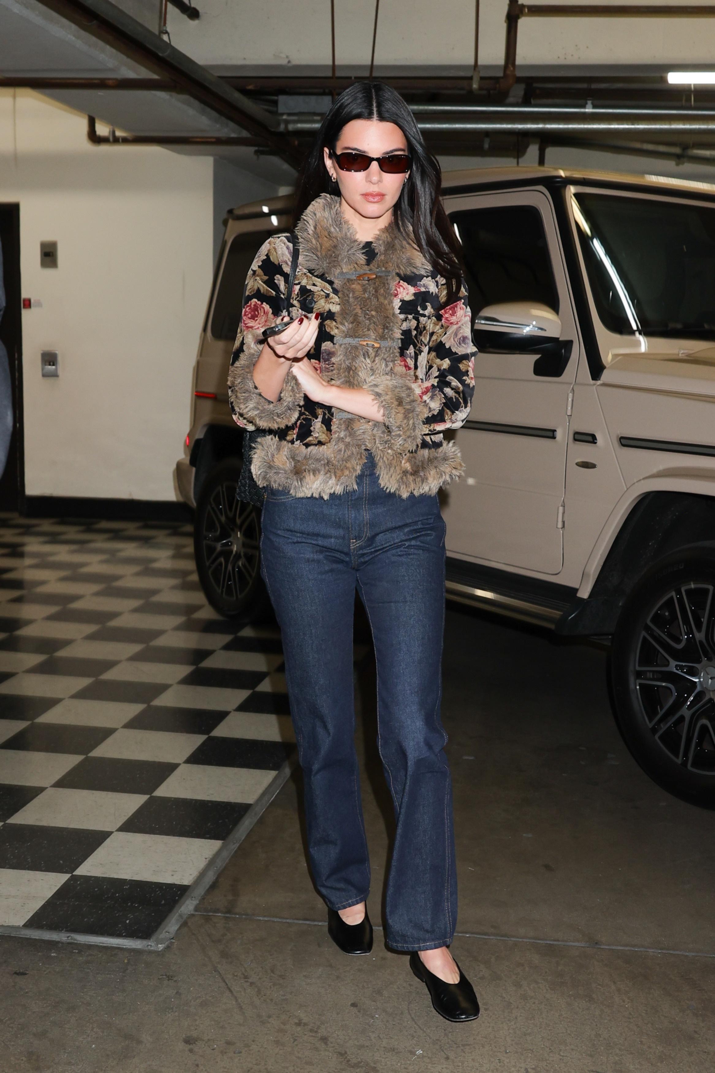 Вечером в Лос-Анджелесе Кендалл отправилась на ужин в Sushi Park — место, которое давно стало негласным клубом для голливудской элиты. Модель появилась в винтажном пальто от L’Est Rose, которое мгновенно приковало к себе внимание. Укороченный силуэт, черная шерсть, деликатный цветочный узор в ретро-стиле, подкладка из коричневого искусственного меха и, конечно, главная деталь — крупные деревянные кнопки, которые и выдают в модели тот самый дафлкот.
