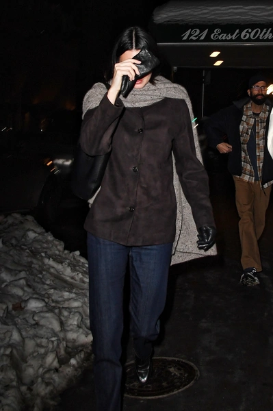 На этот раз внимание привлекли не джинсы и не обувь, а шарф. Кендалл накинула его самым непринужденным способом: перекинула спереди через шею, оставив длинные концы свободно свисать за спиной. Без узлов, без сложных намоток, без демонстративной симметрии. Именно так, будто шарф оказался на плечах в последнюю секунду перед выходом из дома.