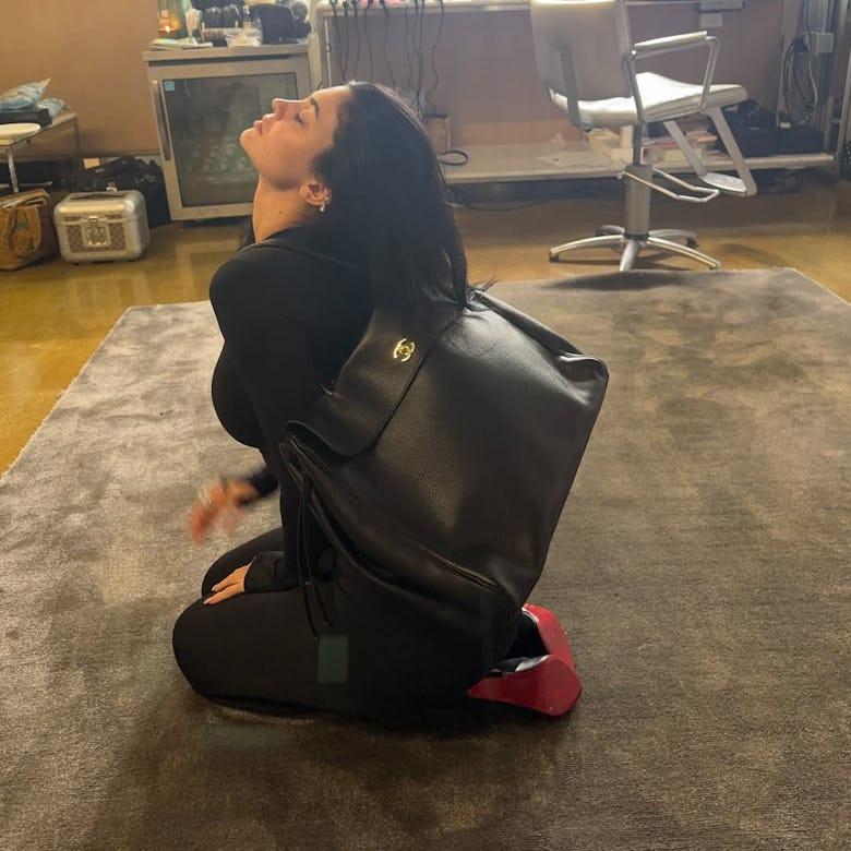 Главное достоинство этой сумки — практичность. Она выглядит сдержанно, но при этом вмещает все, что может понадобиться в течение дня. Бибер использовала ее именно так: без попытки превратить аксессуар в «парадный», она небрежно положила поверх проводные наушники — деталь, которая сразу задала нужное настроение. Эта сумка явно создана не для редких выходов, а для жизни.