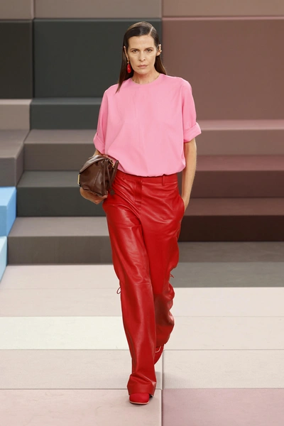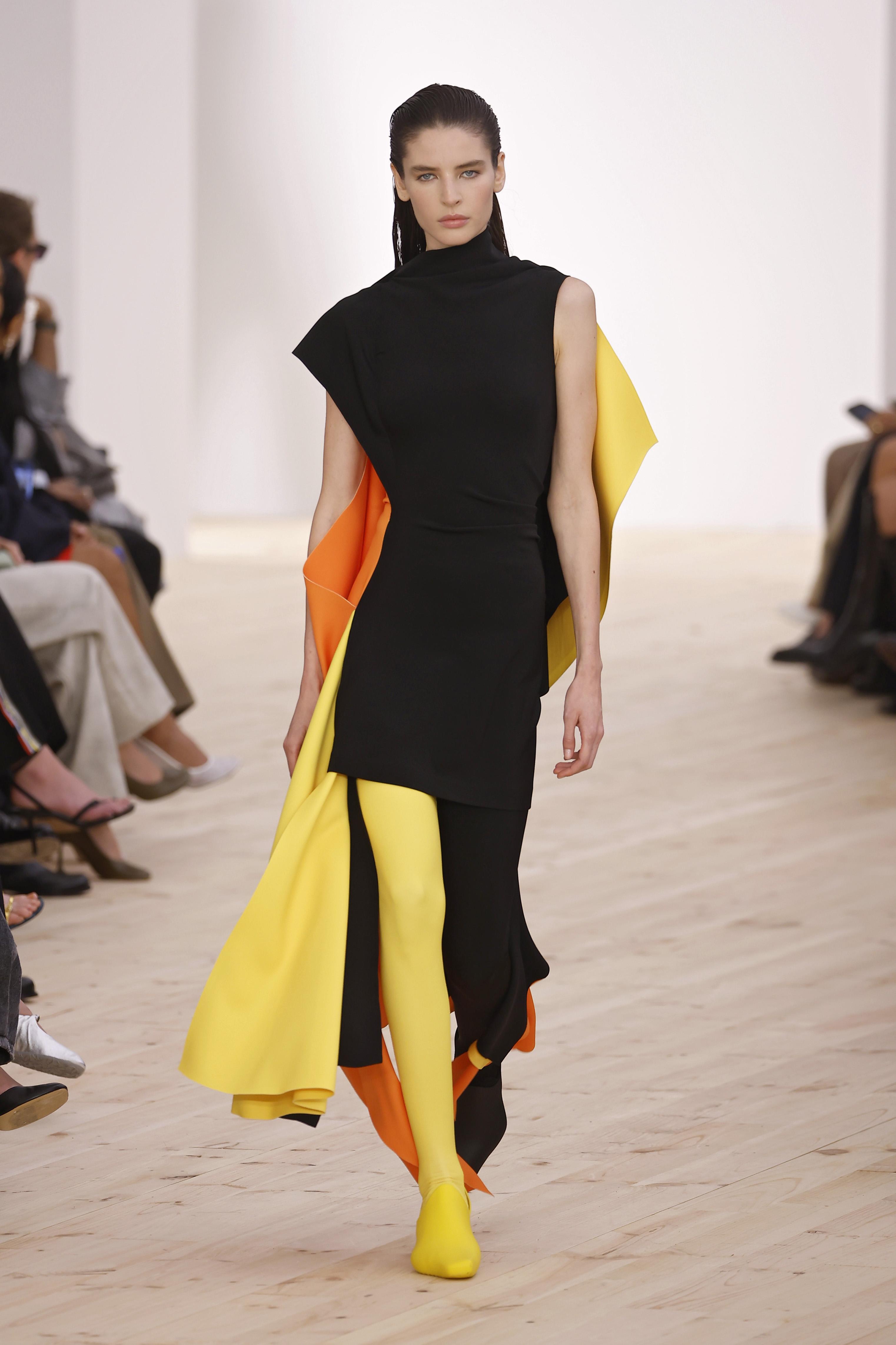 Оранжевый сам по себе согревает взгляд, а в паре с желтым превращается в настоящий антидепрессант. Если хочется чуть приглушить яркость, можно взять черный как базу — так делает Loewe. Черный выделяет эти огненные оттенки и делает образ более собранным.