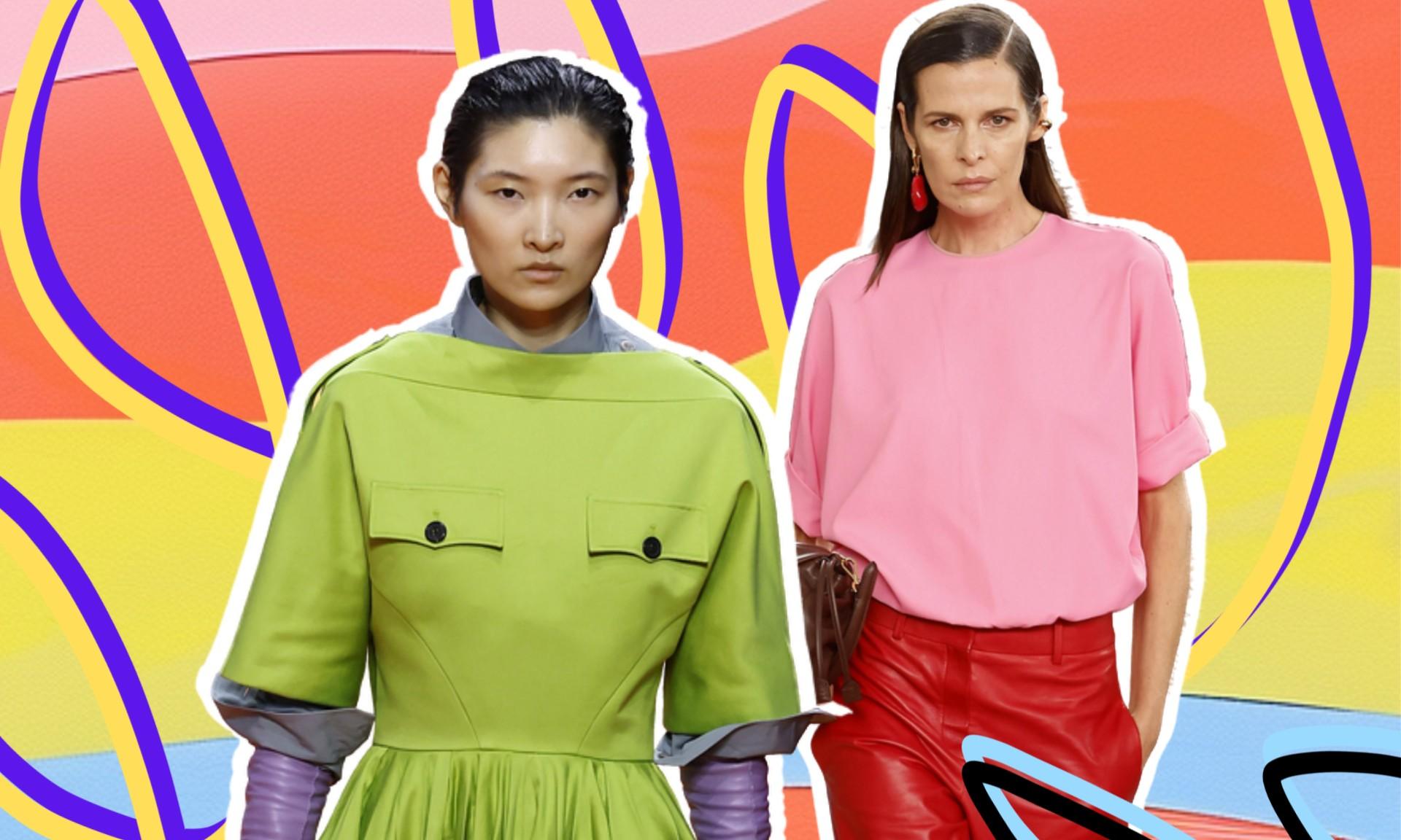 Можно поиграть с парой тонов, а можно собрать целый ансамбль из трех–четырех ярких цветов, если хочется настоящего визуального адреналина. Но прежде чем бросаться в эксперименты, стоит заглянуть на подиумы — дизайнеры подскажут, какие комбинации работают особенно эффектно.