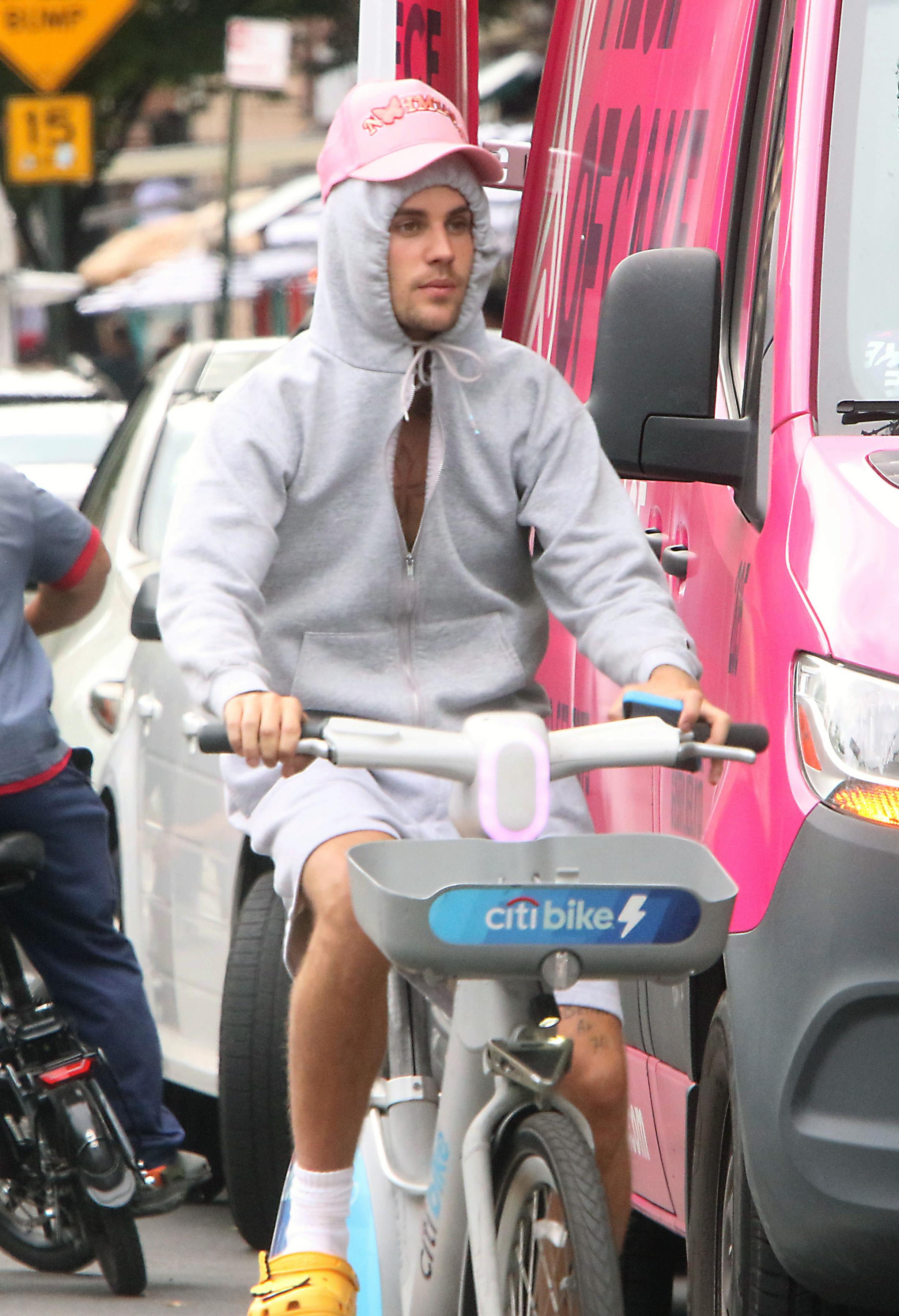 Фотографы тогда поймали певца верхом на велосипеде в спортивных шортах и сером худи с капюшоном. Он натянул капюшон на голову, обтянув овал лица, а сверху набросил розовую кепку. Чуть позже в этом же прикиде он присоединился к Хейли, которая была одета в роскошное красное атласное мини-платье. Кажется, именно с того момента в интернете и зародился мем про «Красавицу и чудовище» в исполнении этой пары 🙈