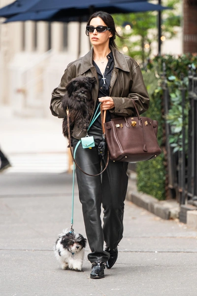 Ирина Шейк в очередной раз превращает самую обычную прогулку со своими собаками по улицам Нью-Йорка в наглядное пособие по стилю. На этот раз модель выбрала выразительный кожаный образ, в котором удивительным образом уживаются строгость силуэта, абсолютная практичность и несколько характерных акцентов, делающих весь комплект запоминающимся и очень личным. И если ты до сих пор считала, что кожаные брюки — вещь слишком смелая, вызывающая или уместная исключительно для вечерних выходов, то этот выход Ирины убедит тебя в обратном 🔥