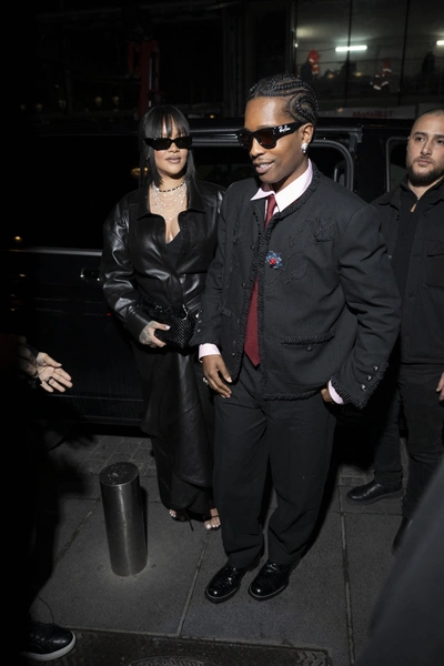 A$AP Rocky, как и ожидалось, поддержал стиль партнерши, но сделал это по-своему. Он выбрал строгий пиджак Chanel с аккуратным кантом и брюки в тон, сохранив монохромную основу. Чтобы образ не выглядел слишком формальным, Рокки добавил розовую рубашку на пуговицах и бордовый галстук. Эти цветовые акценты сделали ансамбль более динамичным и добавили индивидуальности.