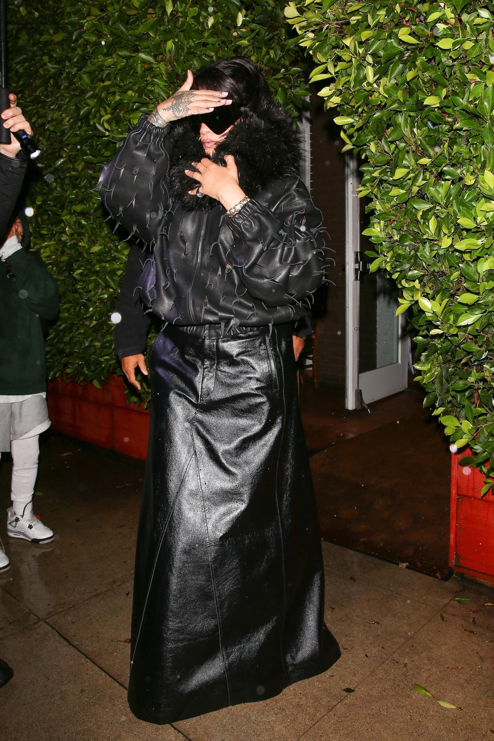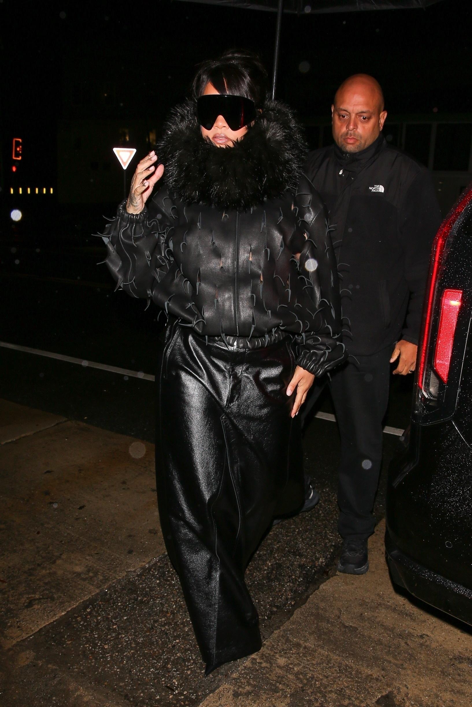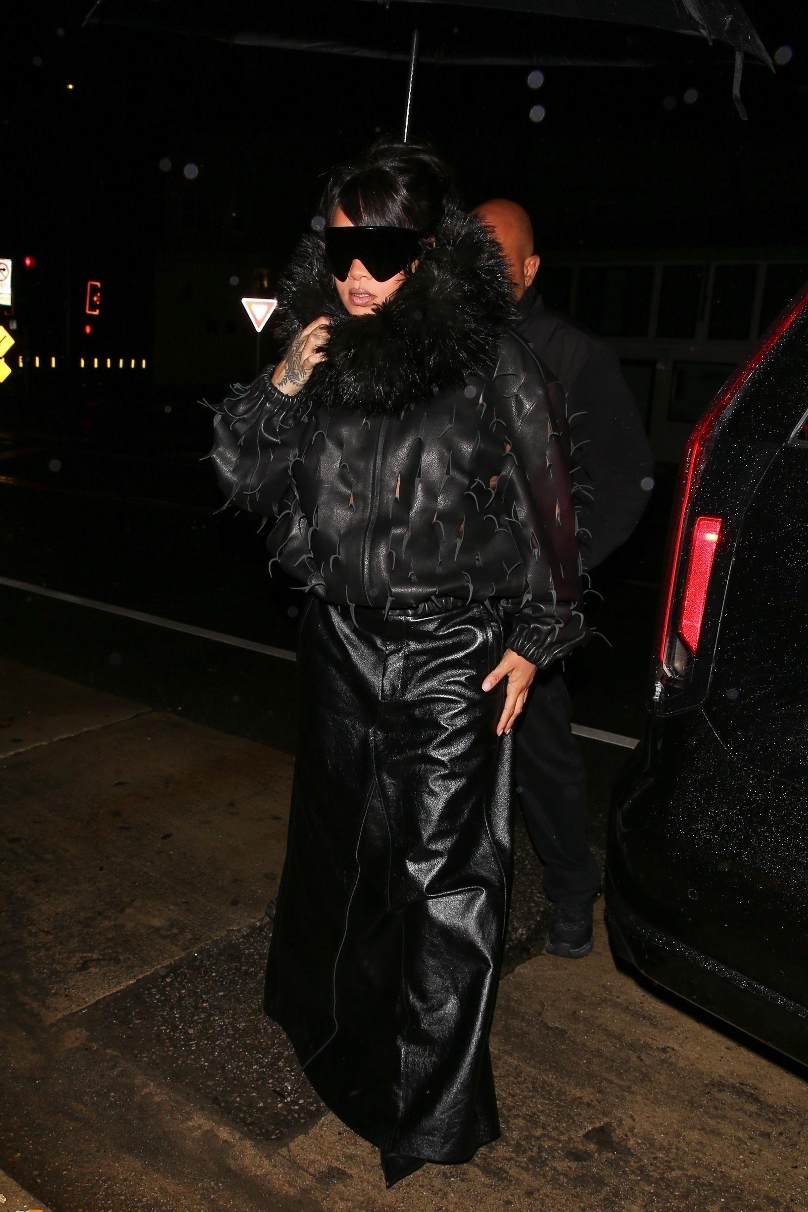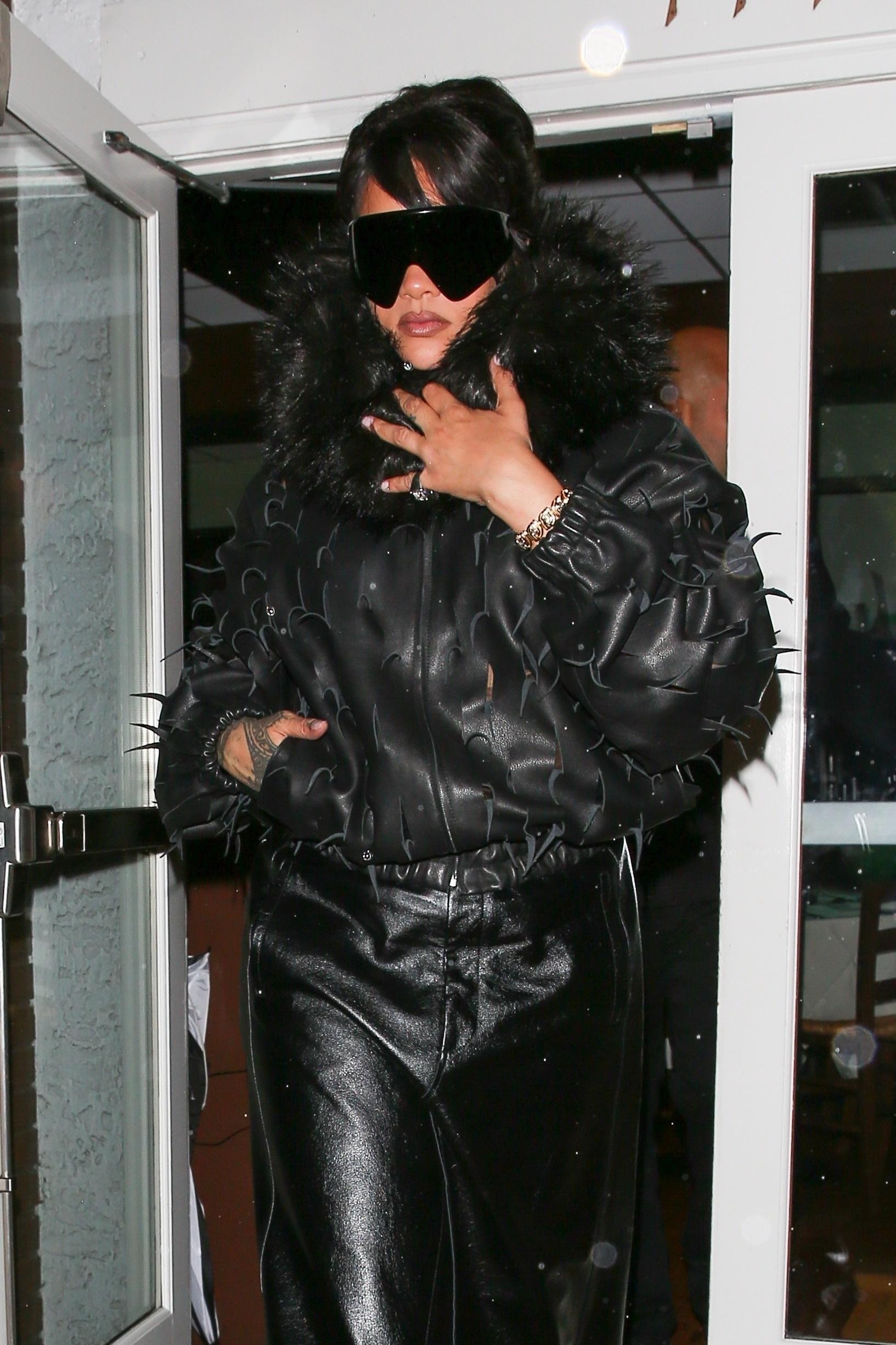 Так было и накануне, когда певицу заметили по дороге в Giorgio Baldi в Санта-Монике — ресторан, где она, кажется, всегда выдает свои самые запоминающиеся наряды. На этот раз Рианна выбрала полностью черный ансамбль, который выглядел одновременно теплым, дерзким и абсолютно зимним.