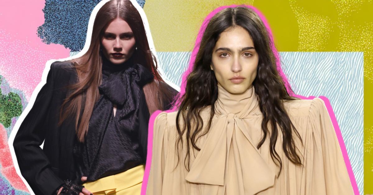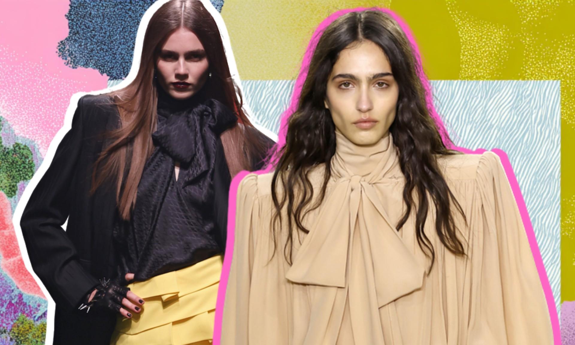 А Stella McCartney предлагает более расслабленную версию: тонкий длинный воротник, завязанный не в бант, а свободно ниспадающий вдоль груди и спины, словно шарфик. Такой вариант отлично подходит для тех, кто хочет добавить в образ легкости и движения.