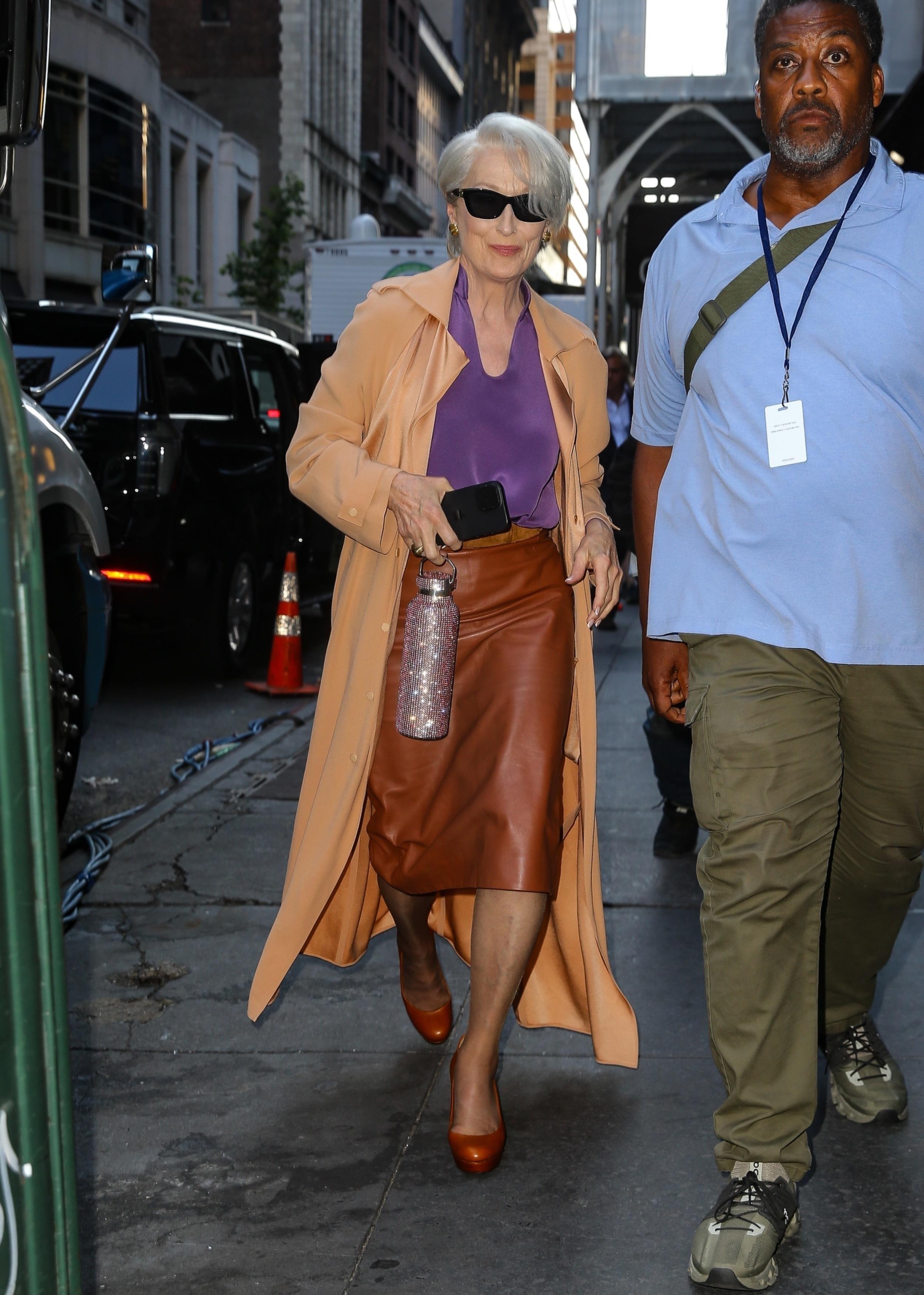 Фиолетовый уже покорил красные дорожки. Тимоти Шаламе вышел в рубашке цвета ириса, Памела Андерсон выбрала платье насыщенного пурпура, а Мерил Стрип появилась на съемках новой картины в наряде Dries Van Noten с блузкой оттенка темной сливы. Все это подтверждает: фиолетовый цвет перестал быть экспериментом и стал новой классикой 😍