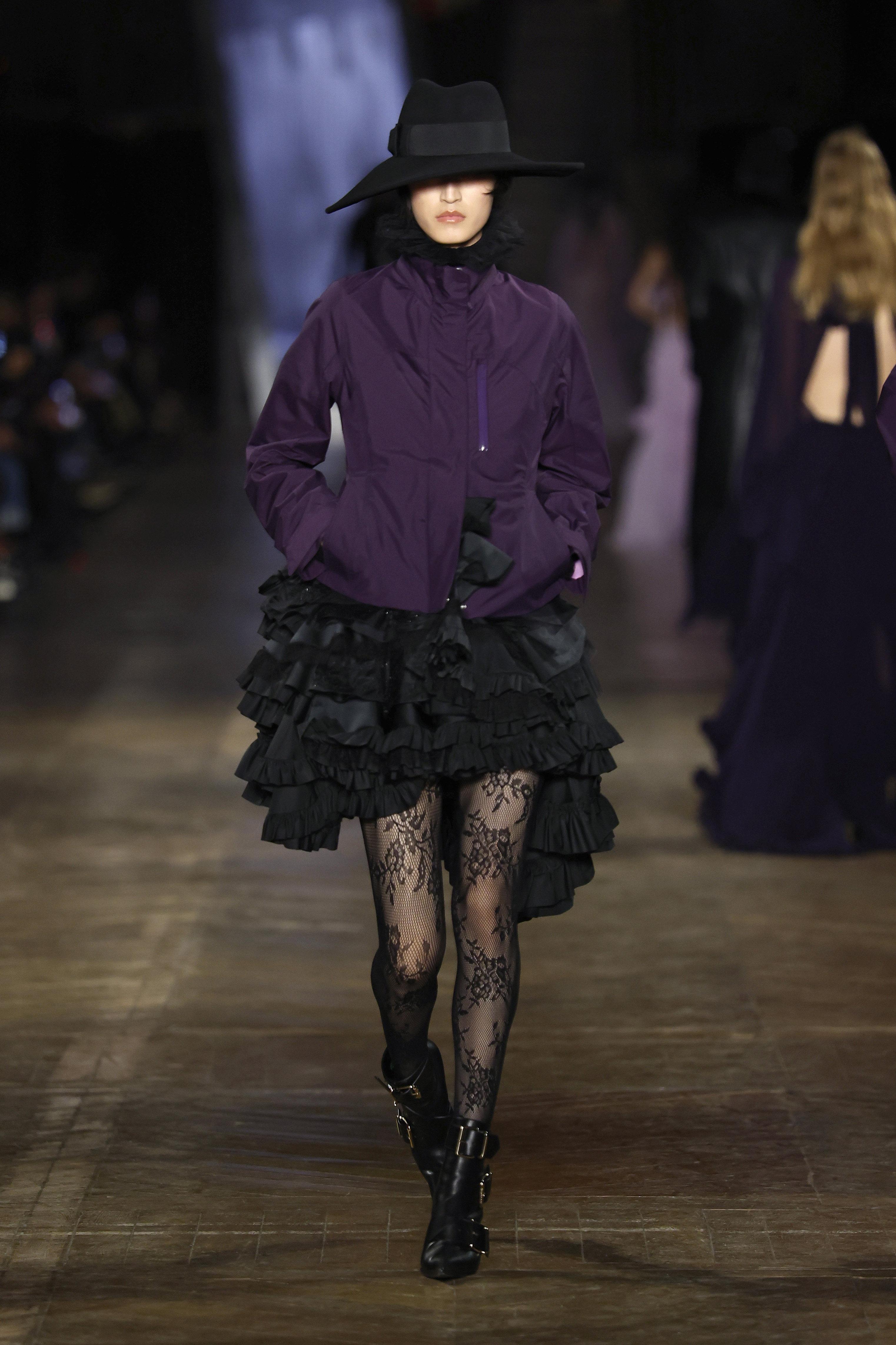 Харриса Рид в Nina Ricci выбрал для своих героинь бархат и искусственный мех в насыщенных фиолетовых тонах. Они будто бы пришли из 70-х — танцевать, смеяться и не бояться выделяться.