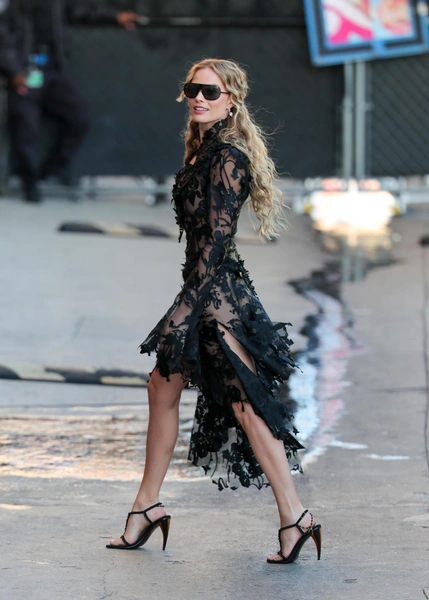 Промо «Грозового перевала» Эмеральд Феннелл еще только набирает обороты, но Марго Робби уже ясно дает понять: к визуальной стороне этой истории она относится с особым вниманием. На шоу Jimmy Kimmel Live актриса появилась в маленьком черном платье из свежей коллекции McQueen весна-лето 2026. Выбор оказался не случайным — кружево, черный цвет, прозрачность и сложный крой мгновенно отсылают к драматике и эмоциональному надрыву, которыми пропитан роман Эмили Бронте.