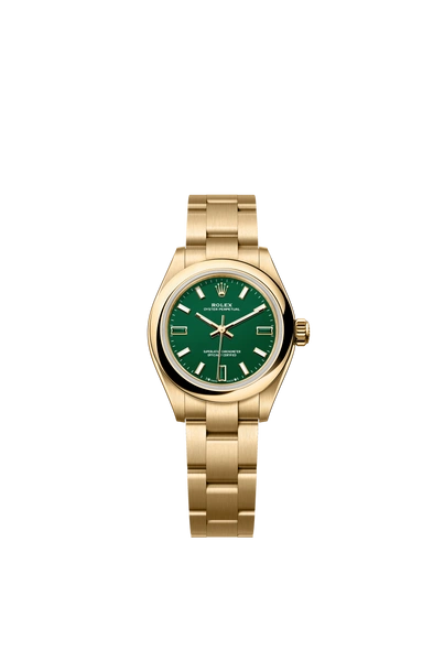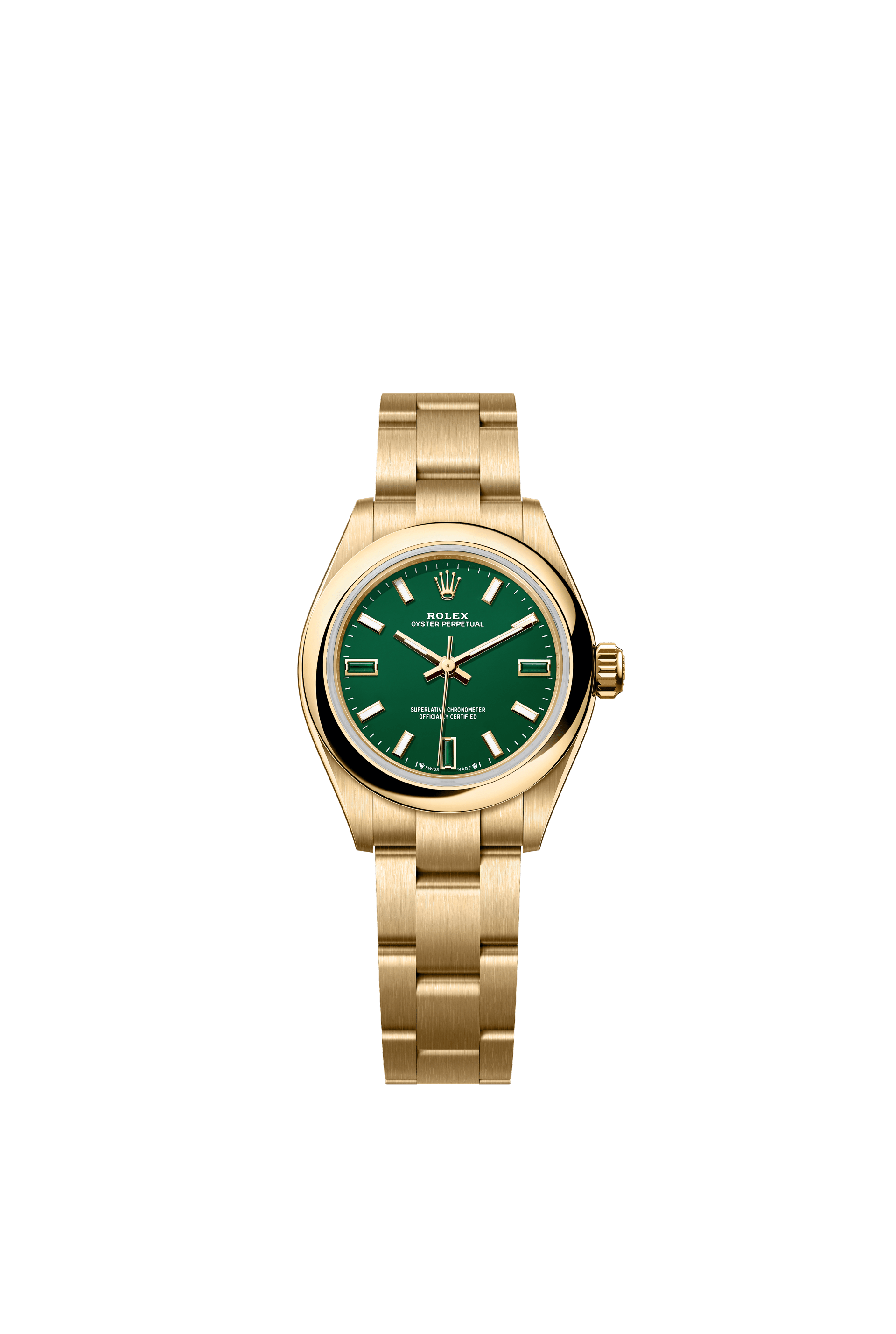 Rolex, всегда самая ожидаемая жемчужина выставки, представил новую золотую мини-модель Oyster Perpetual. Неизменно популярная линейка, всегда отличавшаяся лаконичным спортивным дизайном, теперь выполнена из желтого золота с сатинированной отделкой. Самая маленькая версия диаметром 28 миллиметров особенно хороша с зеленым лаковым циферблатом и гелиевыми камнями на отметках «3», «6» и «9».