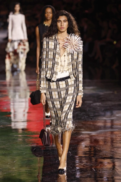 Этот свежий подход особенно ярко проявился в дебютной коллекции Chanel Матье Блази. Дизайнер переосмыслил фирменные твидовые комплекты дома, окрасив их принты в стиле тартан. В коллекциях Brandon Maxwell и Tod’s клетка стала более сдержанной и элегантной благодаря приталенным силуэтам — острым блейзерам и структурированным юбкам.