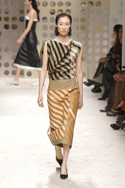 Пока одни дизайнеры отправились за вдохновением в саванну, другие предпочли нежиться у моря. По крайней мере, большинство из них так сильно мечтали о более солнечных местах или пересмотрели «Белый лотос», что украсили вещи широкими полосами, которые сильно напоминают выгоревшие на солнце зонтики на Французской Ривьере.
