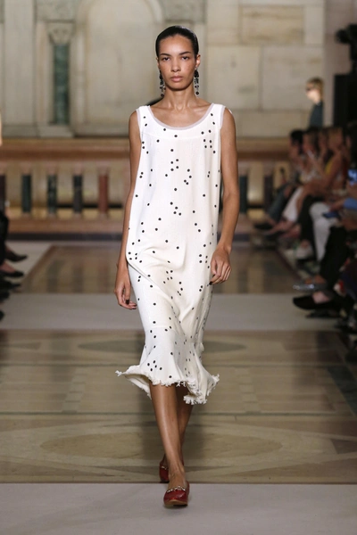 Еще один весенний узор, который в этом сезоне составит цветам серьезную конкуренцию, — горошек. За последние пару лет он стал настолько популярным, что встречается на улицах чуть ли не чаще цветочных принтов. И казалось бы, куда еще? Но дизайнеры на весенних показах решили задачу со звёздочкой: как сделать горошек снова интересным, если он уже везде?