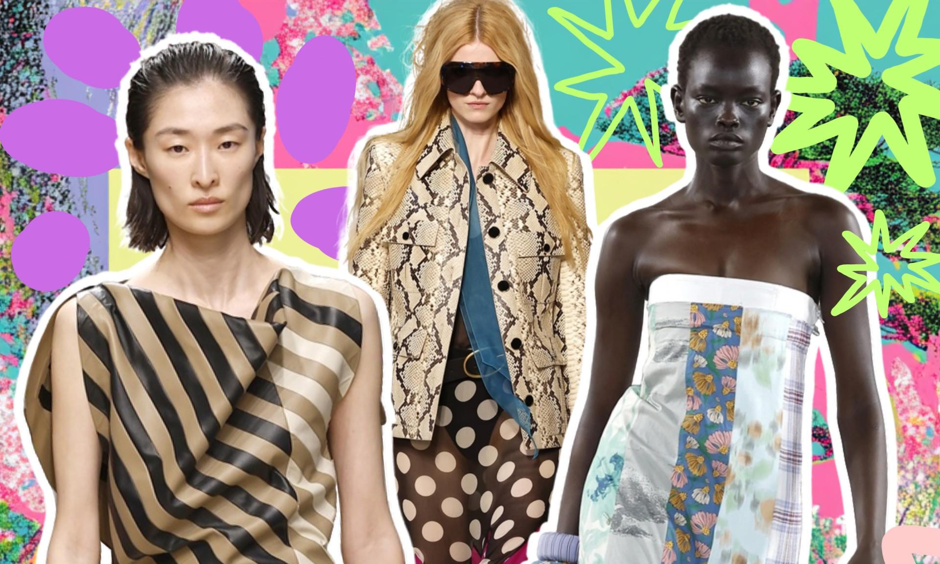 В коллекции Moschino броские контрастные ткани сшили вместе, создав эффектное платье без бретелей. У Stella Jean разномастные принтованные вещи сочетались друг с другом, создавая атмосферу бохо. А в последней коллекции Сильвии Вентурини для Fendi появились калейдоскопические цветочные принты и горошек на прозрачных тканях.
