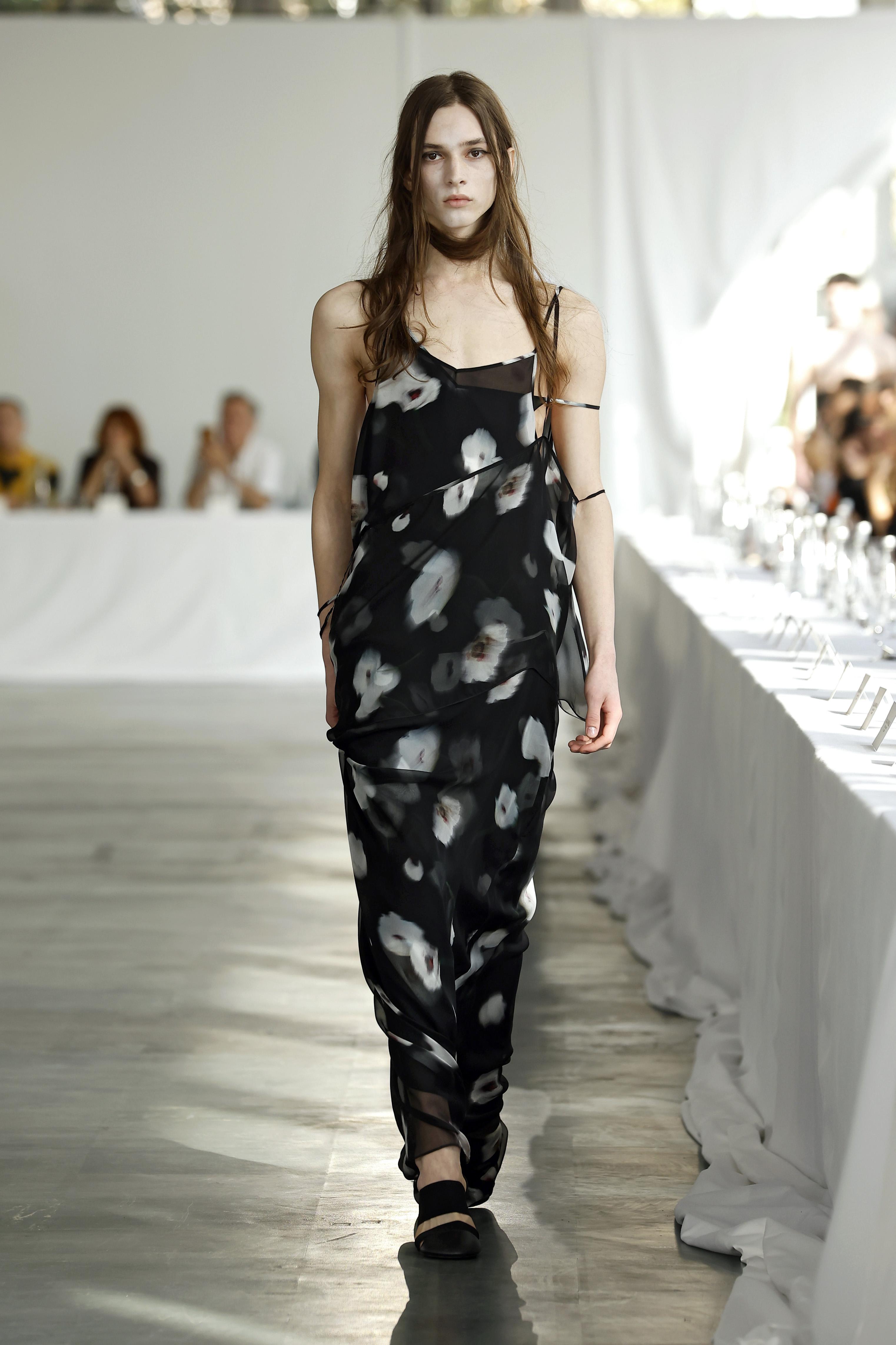 Весенняя коллекция Proenza Schouler яркий этому примером: ткани большинства изделий обработали так, что цветочные мотивы будто бы просматривались сквозь матовое стекло, растекались и теряли четкость. В коллекциях Alainpaul и Sportmax прозрачные наложения создавали почти голографический эффект, от которого рябит в глазах. Вместо ясности эти принты предлагают загадку — и в этом их главное очарование 😍