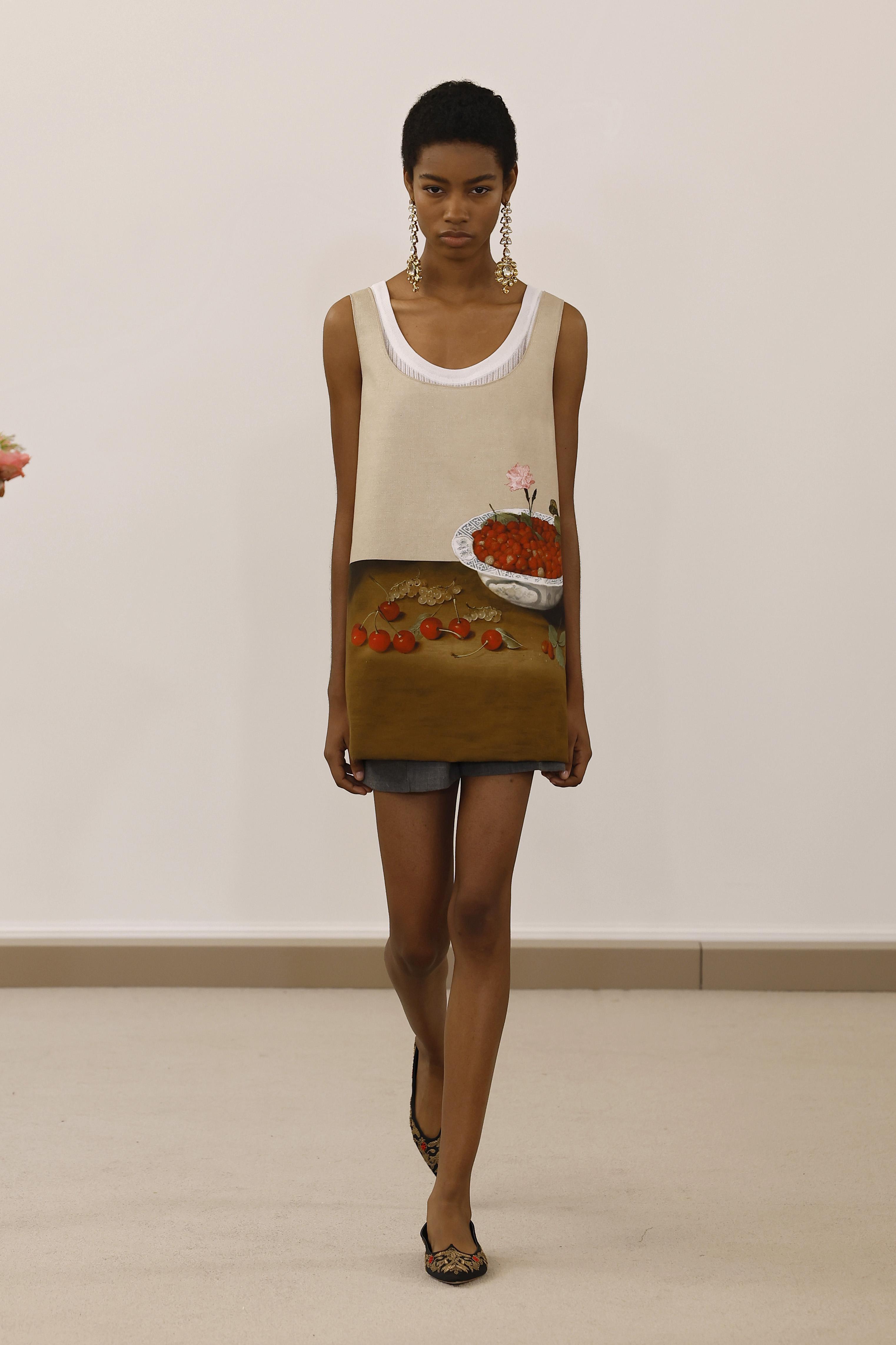 Кроме того, когда вокруг так много сгенерированных изображений, появляется желание увидеть что-то настоящее, созданное руками человека. Многие бренды уловили этот тренд и включили в свои новые коллекции предметы, которые служат живым контрастом к искусственному. Особенно ярко эта идея воплотилась у Джамбаттисты Валли: его модели выходили на подиум в платьях-комбинациях с элементами, напоминающими голландские натюрморты. В то же время Meryll Rogge и Versace предложили более смелые интерпретации, вдохновленные поп-артом и сюрреализмом.