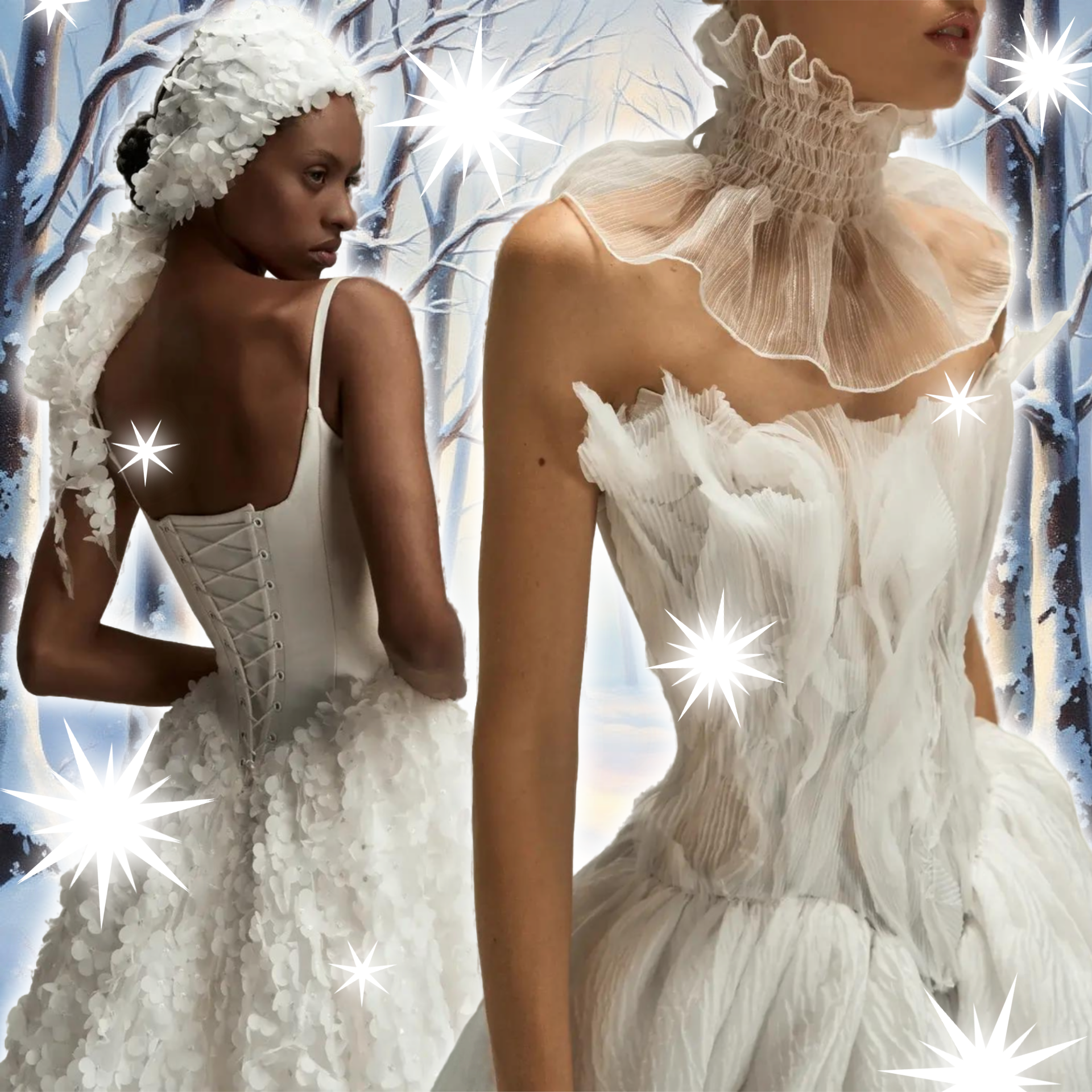 Белый снег, свечи, легкий пар изо рта, меховые накидки, горячий глинтвейн вместо шампанского и фотографии, которые выглядят как кадры из рождественской сказки. Так что — да, эта подборка нарядов для зимней свадьбы абсолютно необходима.