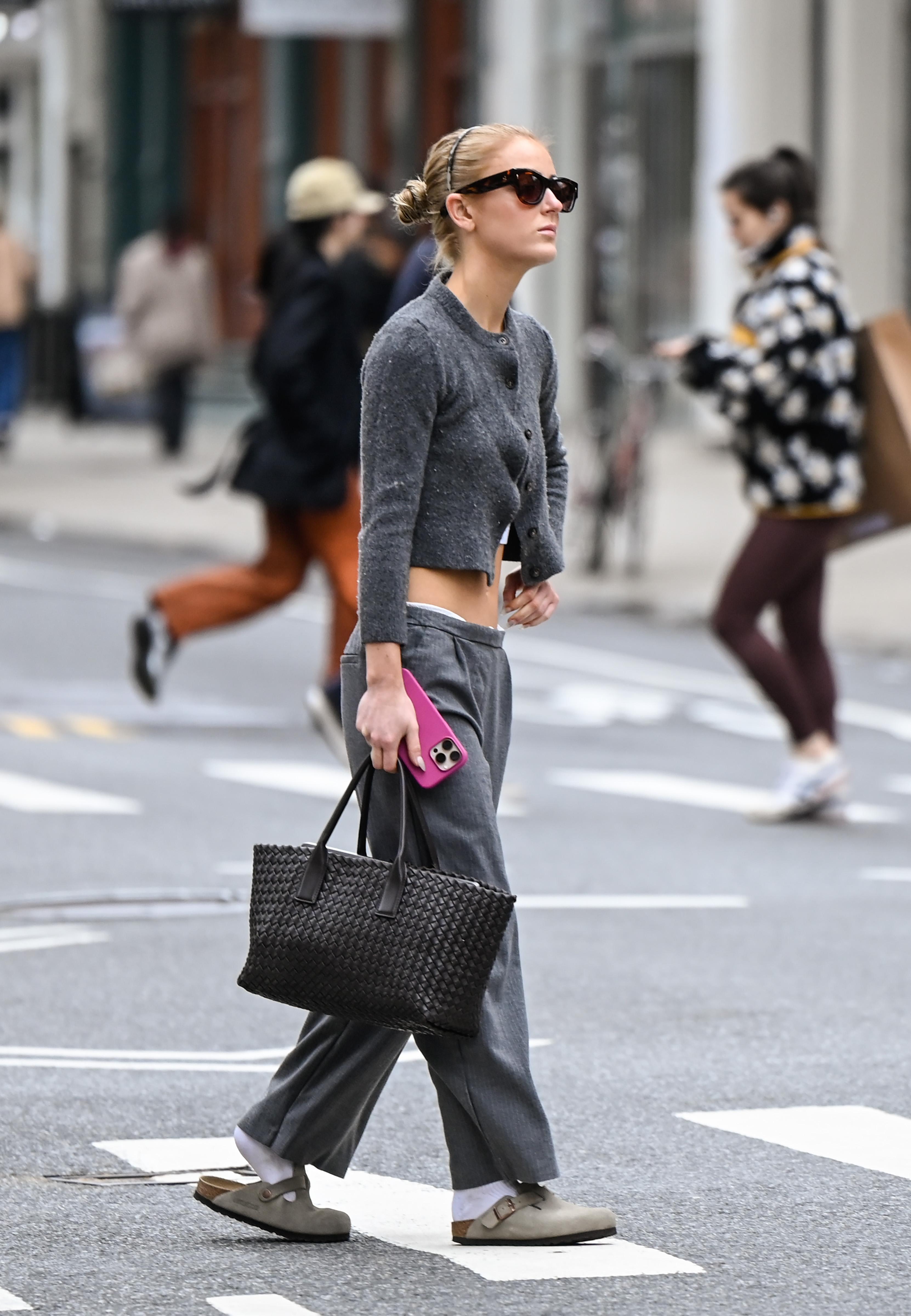 Пожалуй, самые узнаваемые из всего списка — это замшевые мюли в знаменитом стиле Birkenstock. Их отличают боковые ремешки, округлый носок, широкая основа и анатомическая пробковая подошва. Они уже не первый сезон покоряют модниц, став символом разумного комфорта, который не жертвует стилем.