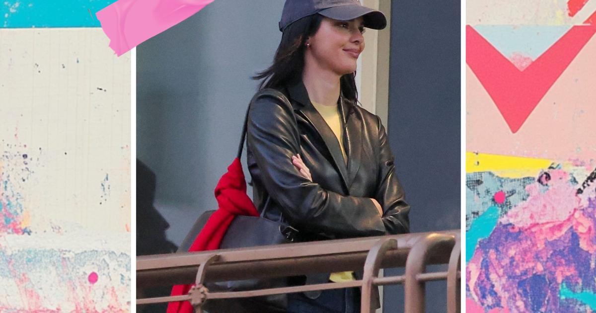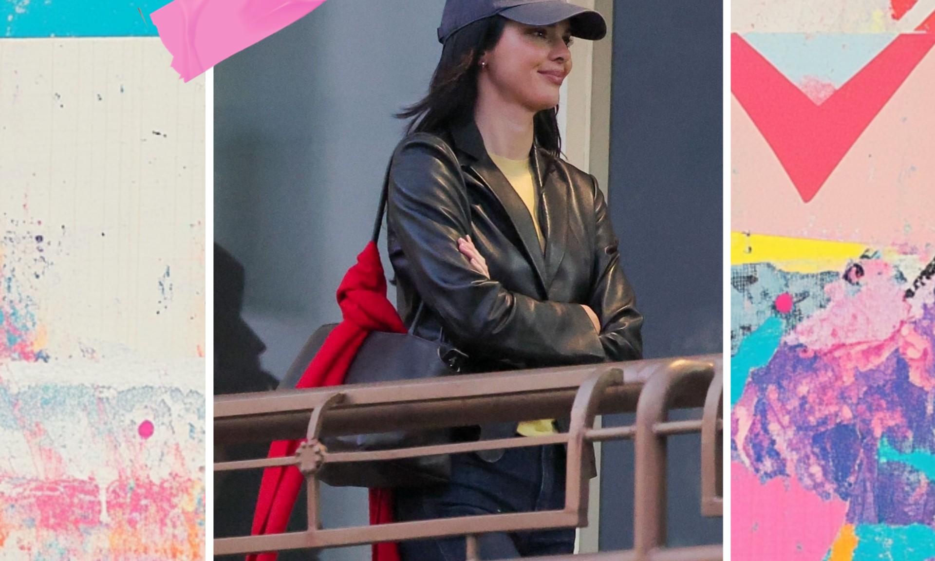 Кендалл надела лимонно-желтый топ и классические темно-синие прямые джинсы — просто, чисто, ничего лишнего. На ногах — ее любимые кожаные балетки Stella от The Row. Эта модель уже давно стала фирменной для Кендалл: она носит их и летом, и весной, и даже осенью, когда еще тепло. Сверху она накинула черный укороченный кожаный пиджак приталенного силуэта. На голове — темно-синяя бейсболка New York Yankees для завершенности. Ну а далее — главный сюрприз.
