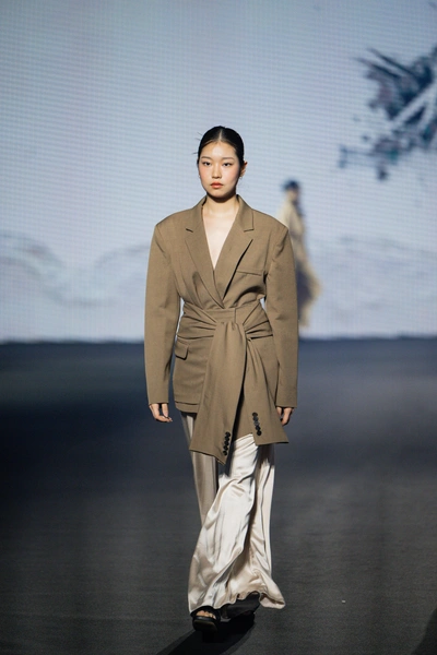Восток встретился с Западом в самом прямом смысле. Один из ключевых трендов — пиджаки и жакеты, которые носят как кимоно. Пуговицы игнорируются: полы просто запахиваются одна на другую и фиксируются широким поясом. Это создает мягкий, струящийся силуэт, который одновременно и скрывает, и подчеркивает фигуру. В том же ключе — куртки и пальто с косыми застежками, широкими, почти богемными рукавами и стоячими воротниками. Такой крой отсылает к традиционным ханбокам, но выполнен в современной палитре и из современных материалов: шерсти, твида, техничного хлопка.