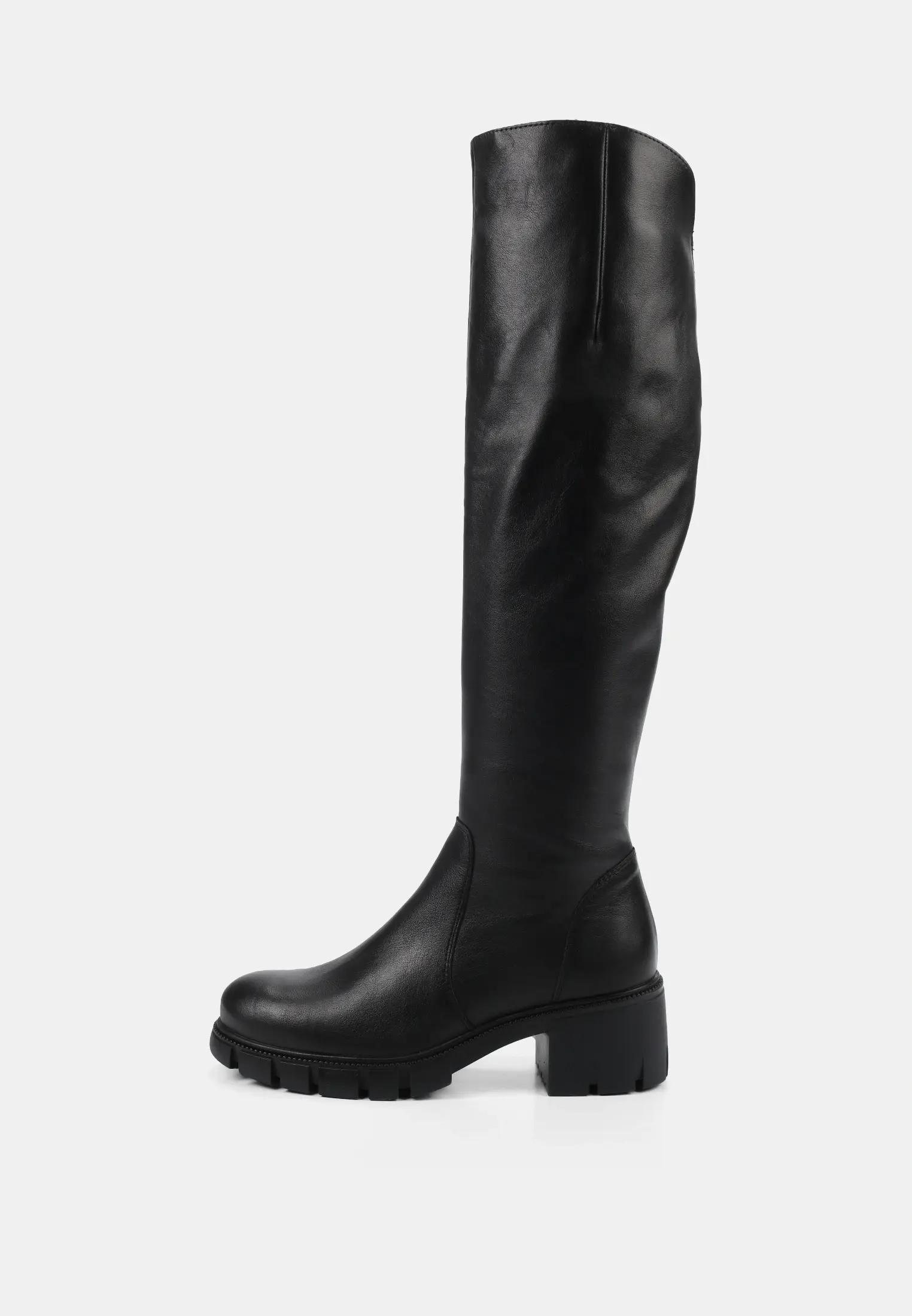 Если массивные ботинки кажутся слишком грубыми, обрати внимание на кожаные сапоги с устойчивой подошвой и небольшим, но надежным каблуком. В моде сейчас сапоги длиной до колена, похожие на классические жокейские, но адаптированные для зимы. У них утепленная стелька, нескользящая подошва и плотный верх. В гололед такие сапоги не подведут, даже если выбирать варианты на низком каблуке.