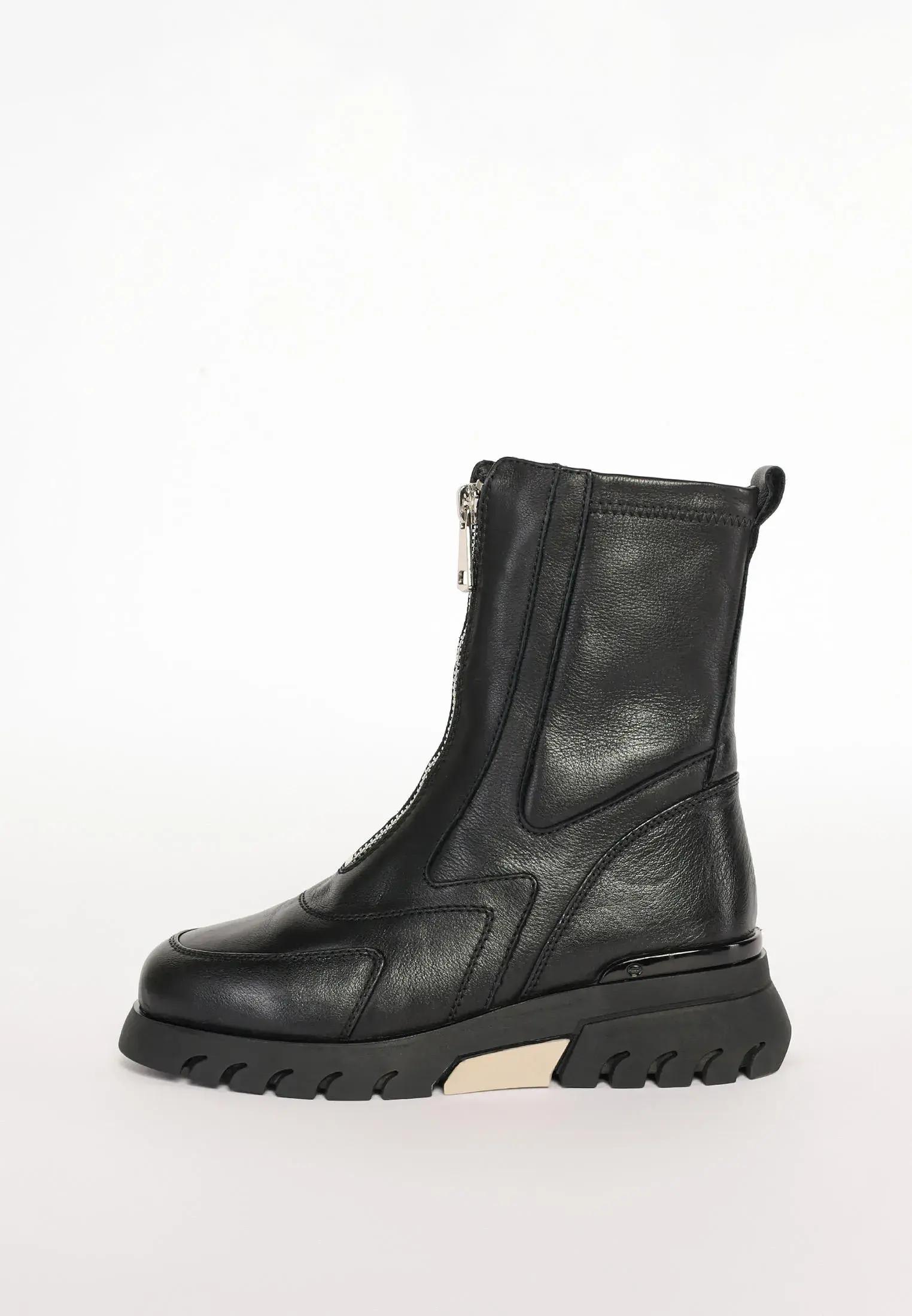 Такая пара — самый простой способ чувствовать уверенность даже на утрамбованном льду. И чем рельефнее и «испещерненнее» подошва, тем лучше. Глубокий протектор действует как мини-шипы, цепляясь за поверхность и предотвращая скольжение. Сейчас в магазинах представлено множество лаконичных моделей на массивной подошве: от укороченных челси до ботинок на шнурках.