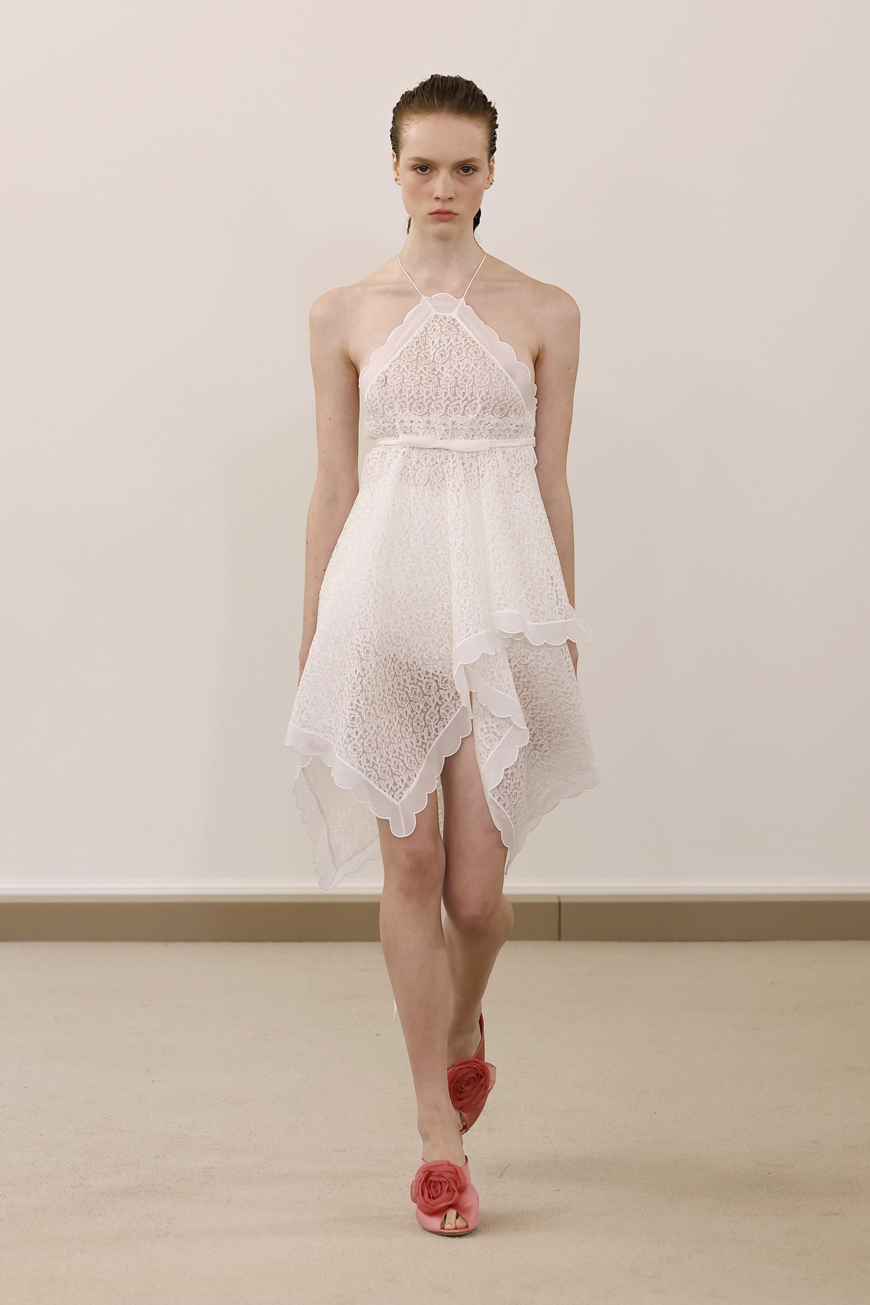 Жюльен Доссена, креативный директор Rabanne, в сезоне весна-лето 2026 исследует сразу два направления: летнюю беззаботность и эстетику 1950-х годов. На подиуме появились очень роскошные трикотажные изделия, крепы, жаккардовые ткани и рельефные фактуры, но главное внимание привлекла обувь. Дизайнер представил туфли, размеры и форма которых повторяют очертания пальмовых листьев.
