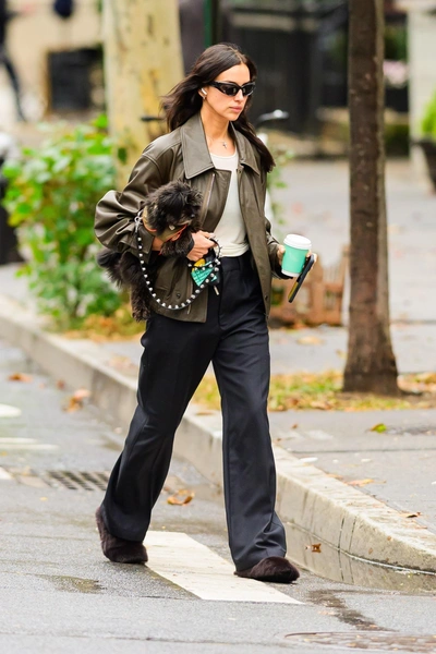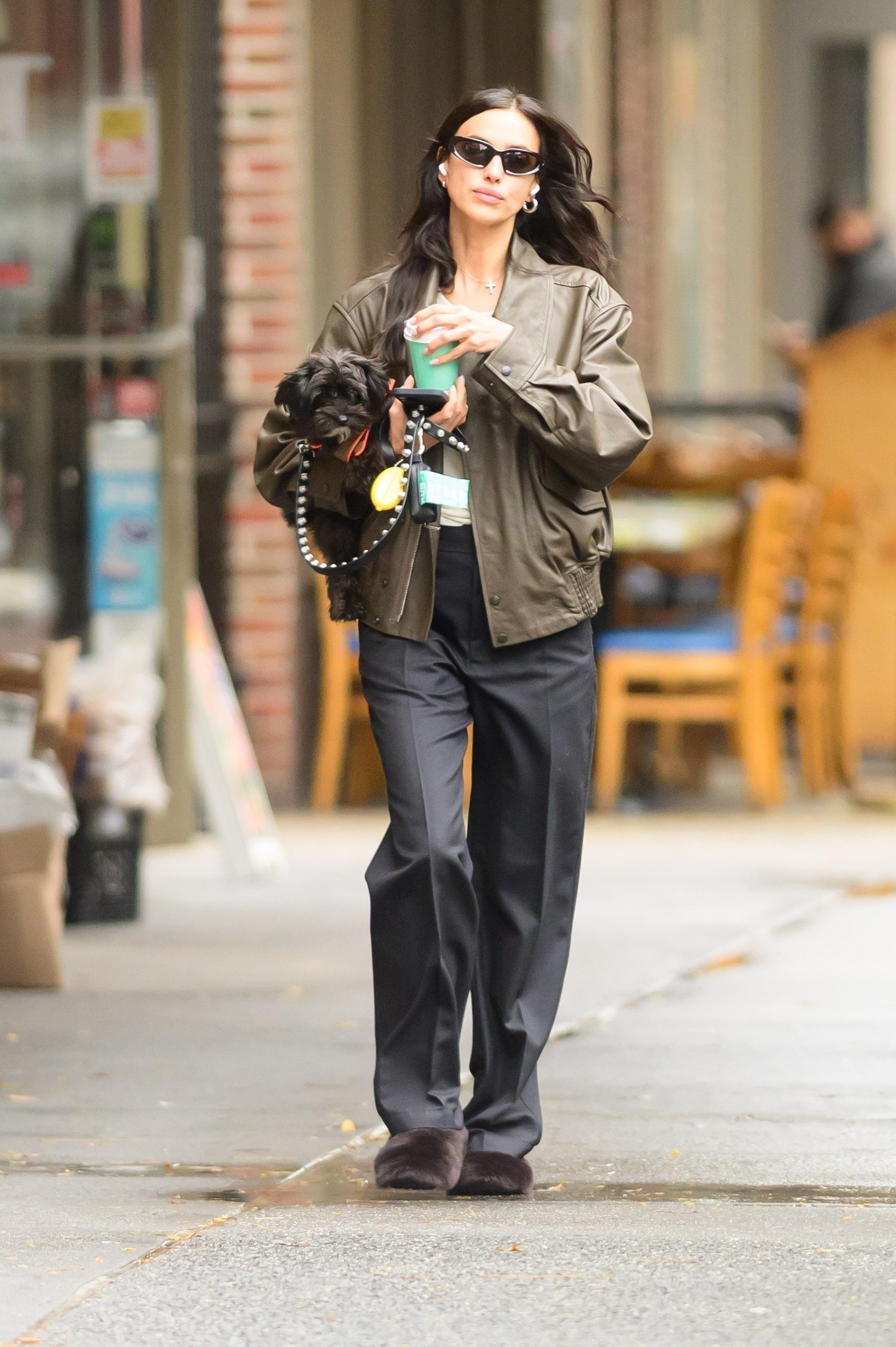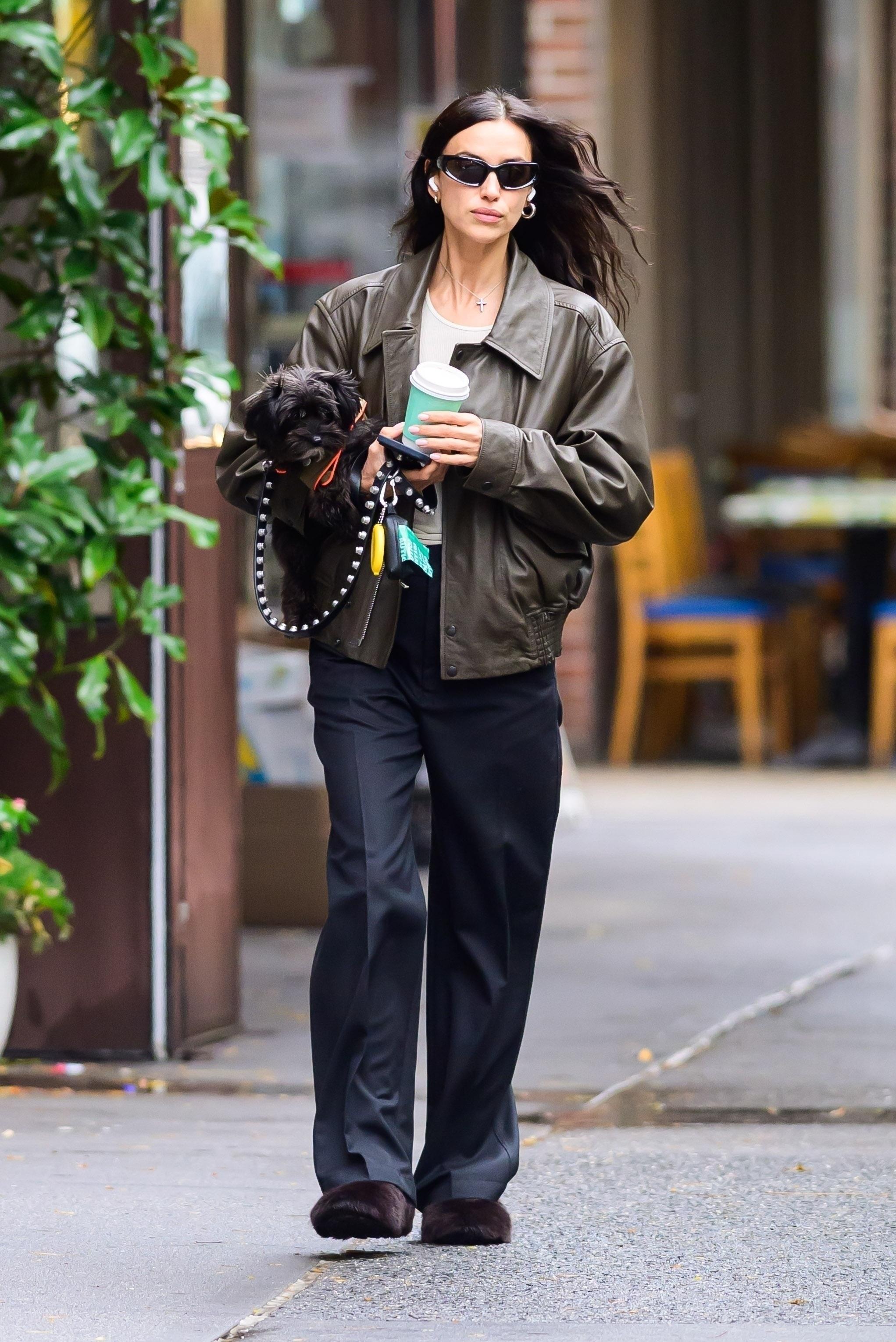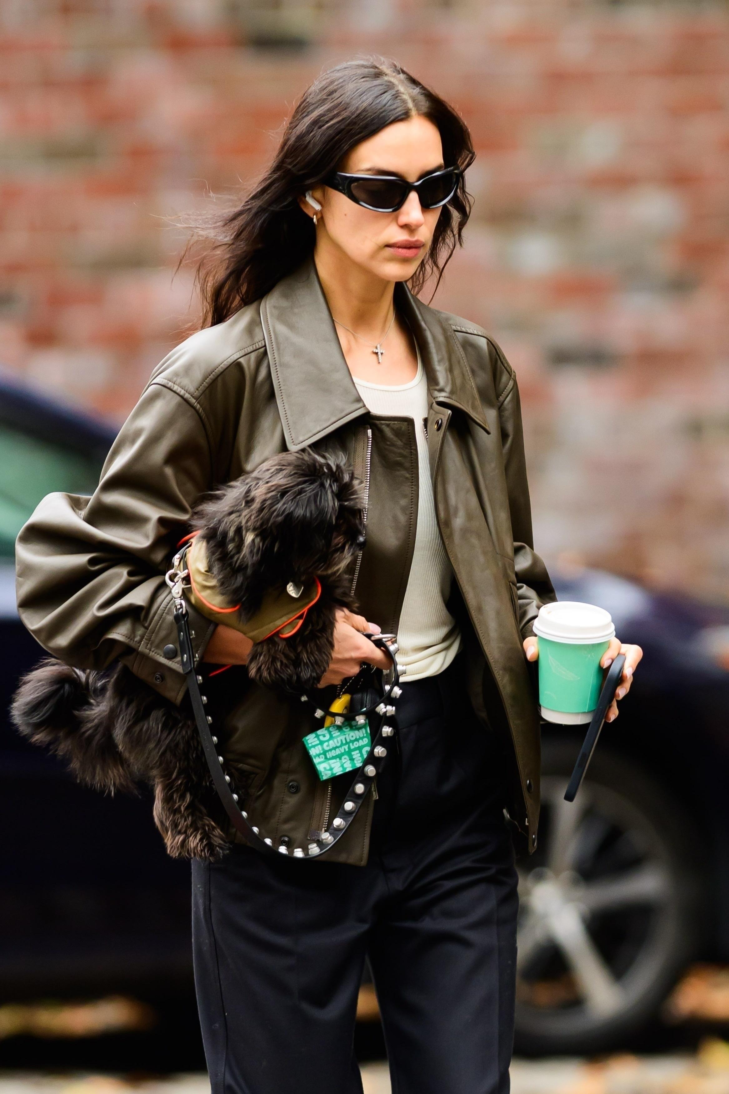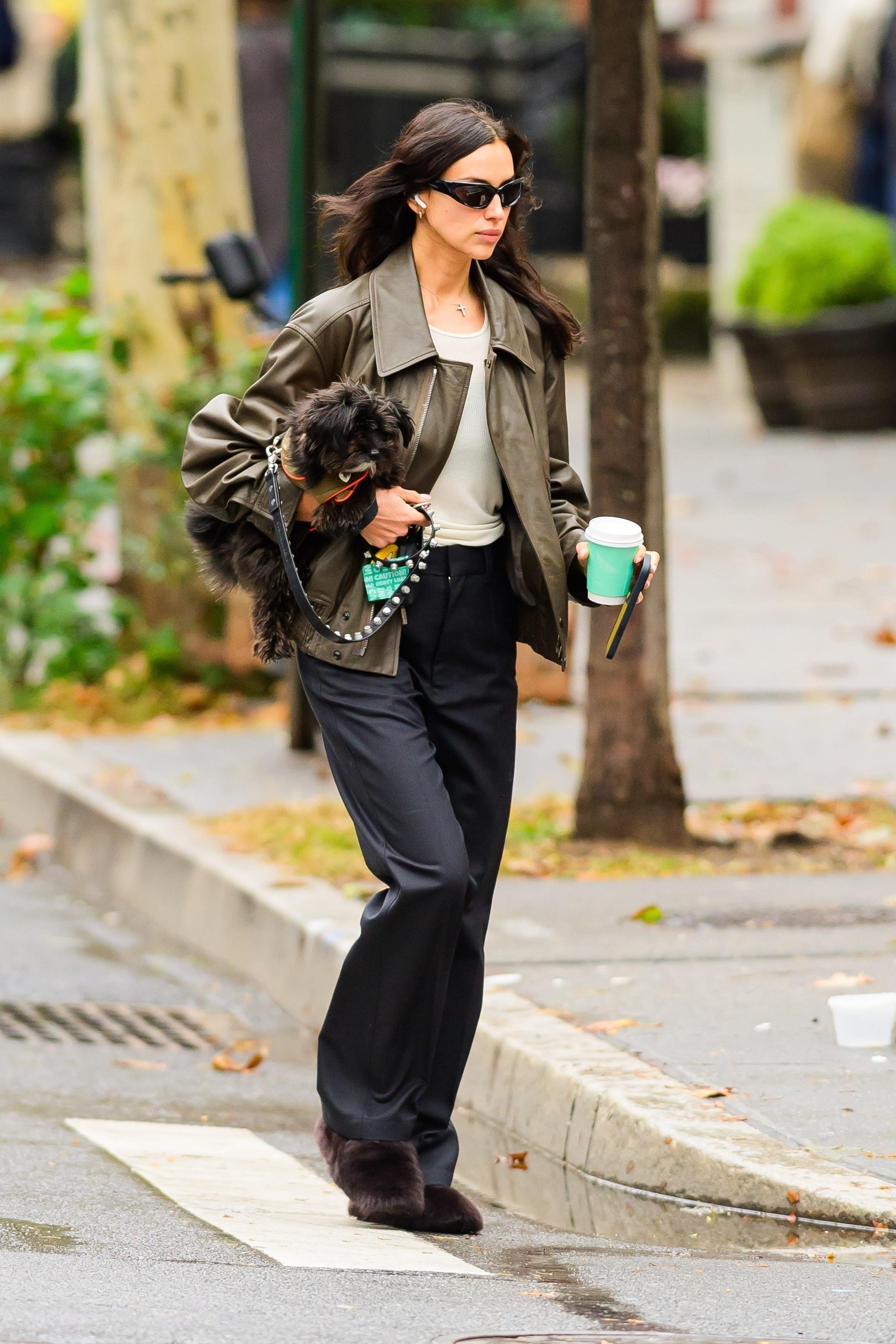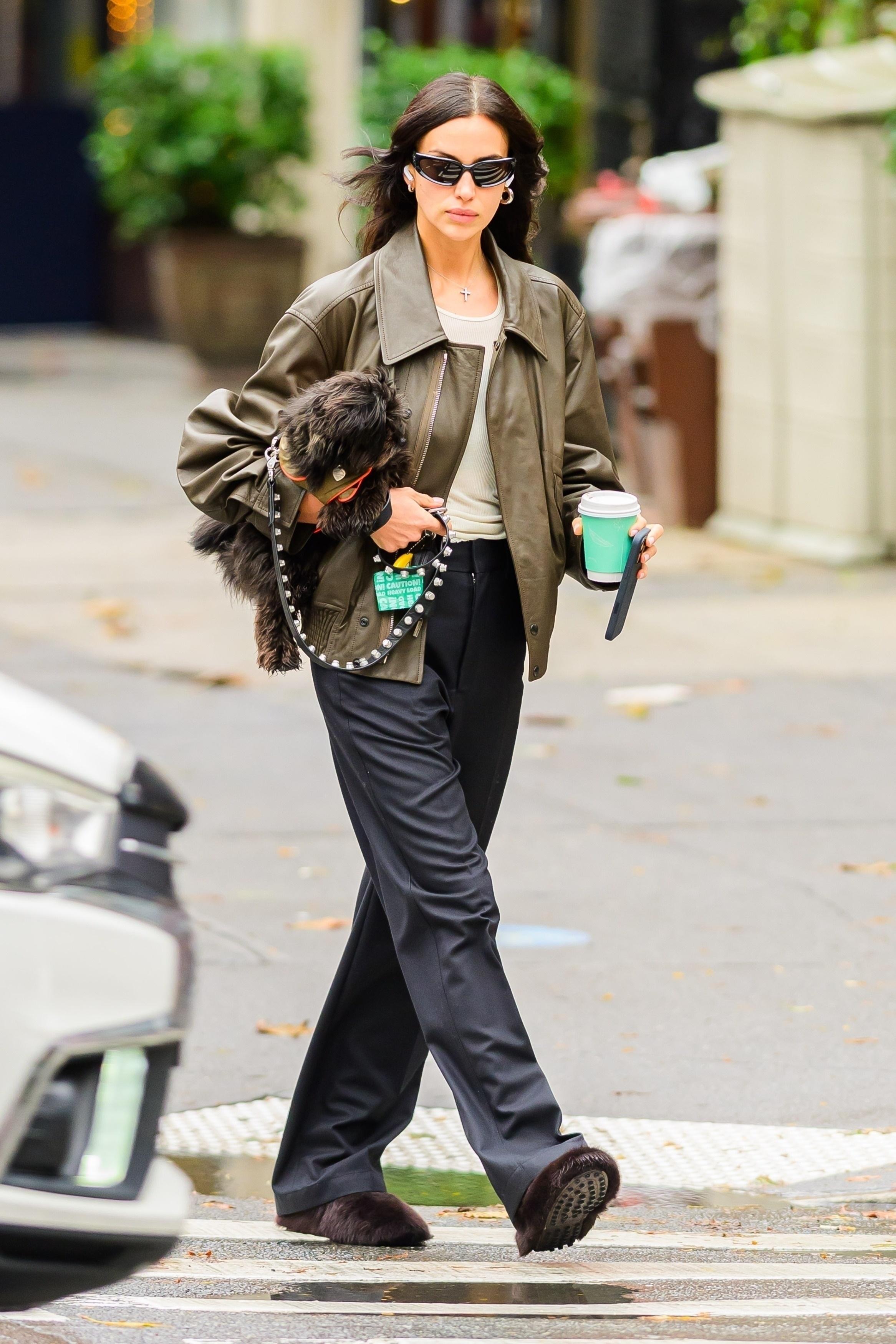 Ирину Шейк заметили на прогулке по Нью-Йорку с собакой — и, как это часто бывает, даже будничный выход супермодели мгновенно стал предметом обсуждения модных изданий и пабликов. На ней — кожаная куртка оливкового оттенка, белая майка, классические свободные брюки со стрелками и пара необычной обуви, которая и привлекла внимание: меховые ботинки, которые просто идеально подходят для долгих прогулок по холодным улочкам мегаполиса.