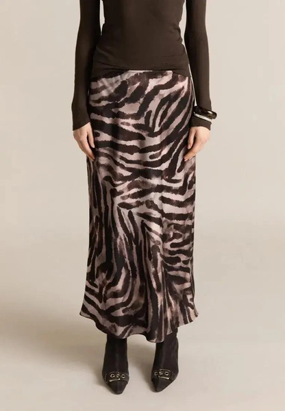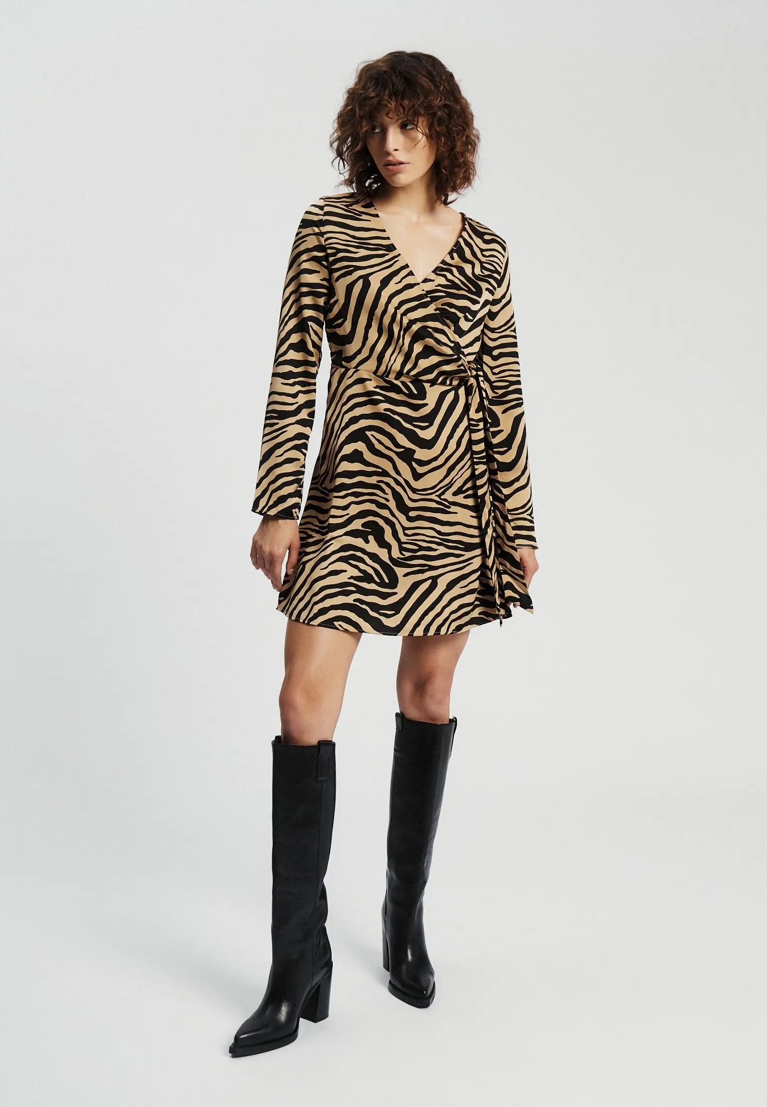 Тигровый узор работает за счет графики. Полосы создают движение, вытягивают силуэт, добавляют ритм даже самой простой вещи. В отличие от леопарда, который часто уходит в декоративность, тигр выглядит жестче и архитектурнее. Он не растворяется в образе, а собирает его.