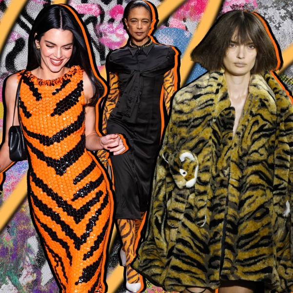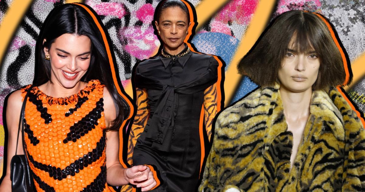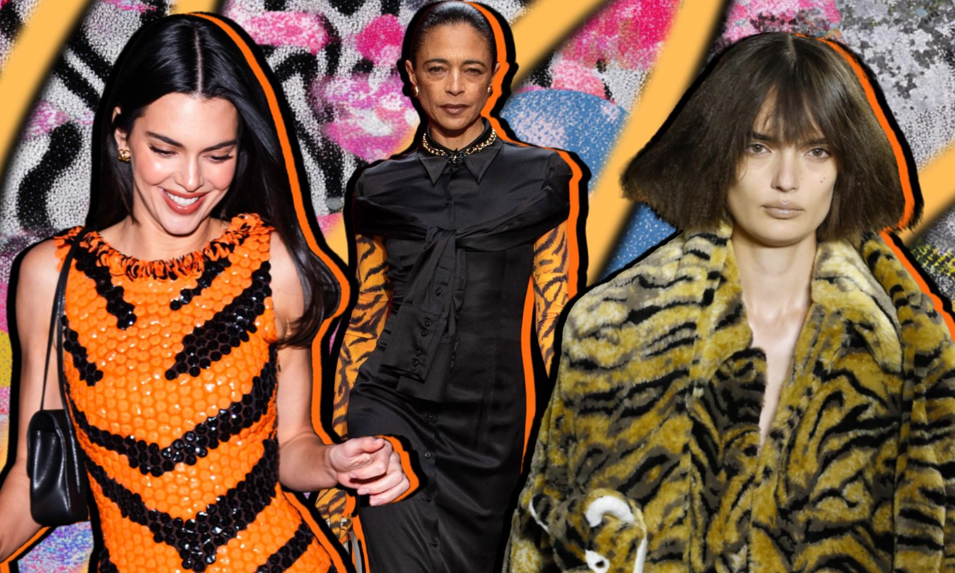 Как только тренд становится визуально считываемым, его, разумеется, подхватывают те, кто умеет работать с образом без полумер. Кендалл Дженнер, например, совсем недавно появилась в том самом тигровом платье-футляре с показа Chanel Métiers d’art Мэттью Блази в Нью-Йорке на съемках развлекательного шоу.