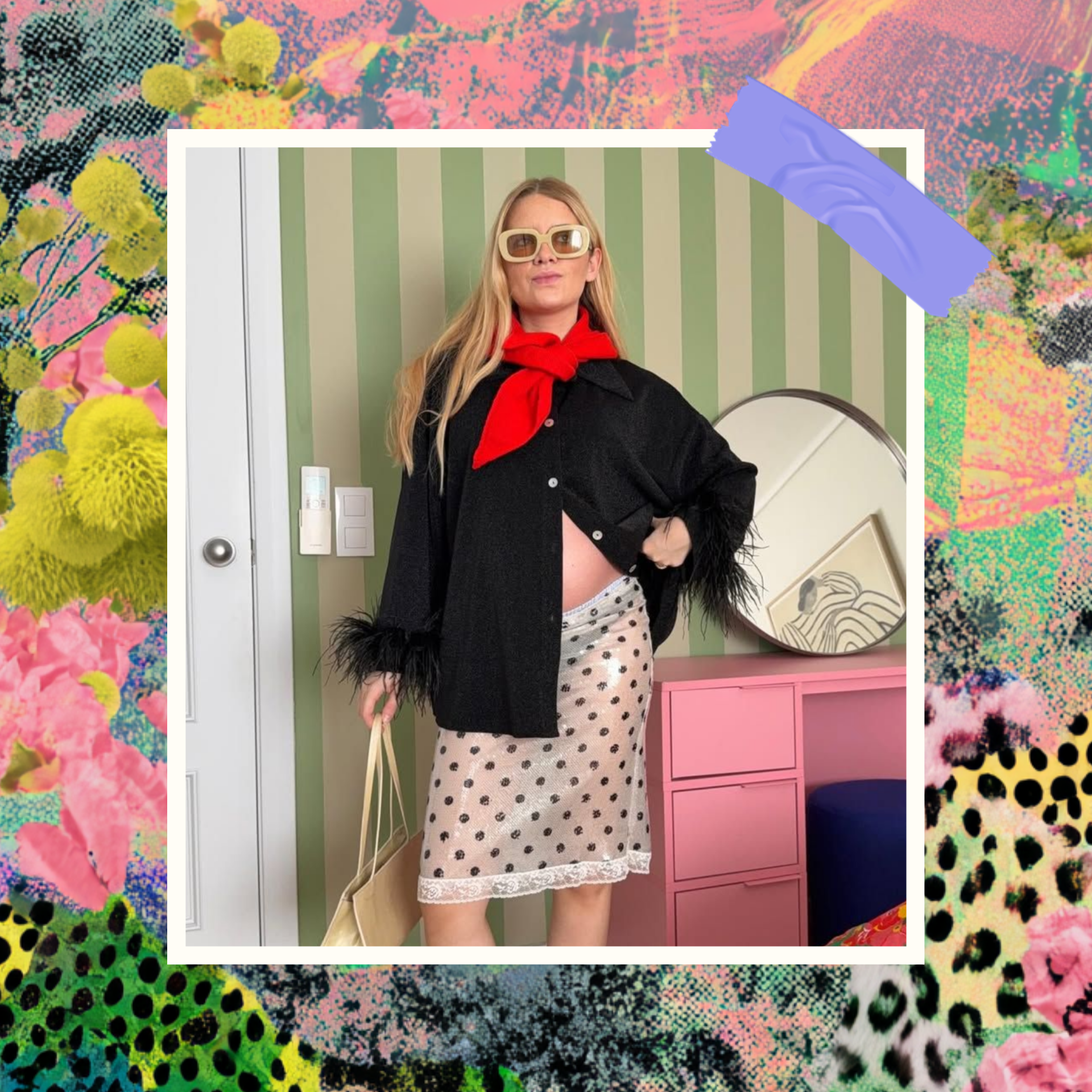 Если платье или жакет с перьями кажутся тебе пока слишком смелыми, начни с малого. Перьевая сумка — идеальный компромисс. Клатч, полностью покрытый перьями, или небольшая сумочка с пушистой отделкой притягивает взгляды и работает как яркий акцент. При этом сама ты можешь быть одета хоть в простые джинсы и белую рубашку.