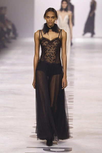 Здесь, конечно, главная моя любовь — сиреневое макси-платье из перьев с показа Stella McCartney. То самое, в котором Кейт Бланшетт выходила на красную дорожку церемонии «Бэмби» в 2025 году — выглядела она в нем просто сногсшибательно 💔 Но для жизни, конечно, можно выбрать что-то поскромнее, но не менее эффектное. Например, платья с перьевым лифом или подолом. В таком и на свидание пойти не стыдно, и на дне рождения подруги чувствовать себя королевой.
