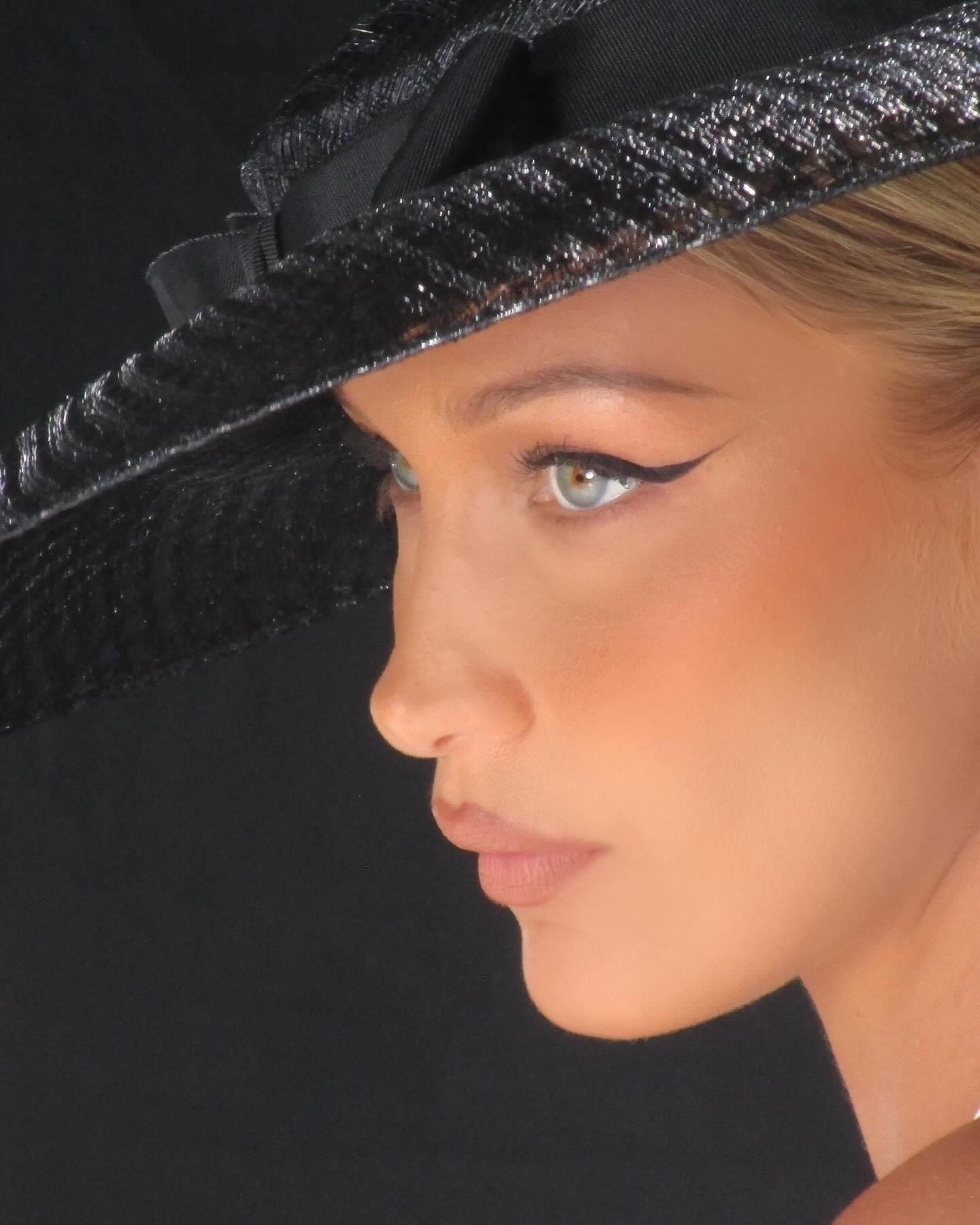 К платью Белла добавила аксессуар, который стал главным штрихом — черную широкополую шляпу. Легкая, полупрозрачная, с аккуратно завязанной лентой, она будто вводит в кадр иной, чуть замедленный, более чувственный ритм. Шляпа закрывает часть лица, но не скрывает эмоции — наоборот, делает их выразительнее. Такой контраст светлого платья и темного аксессуара создает идеальную формулу вечернего образа: минимум деталей, максимум эффекта.